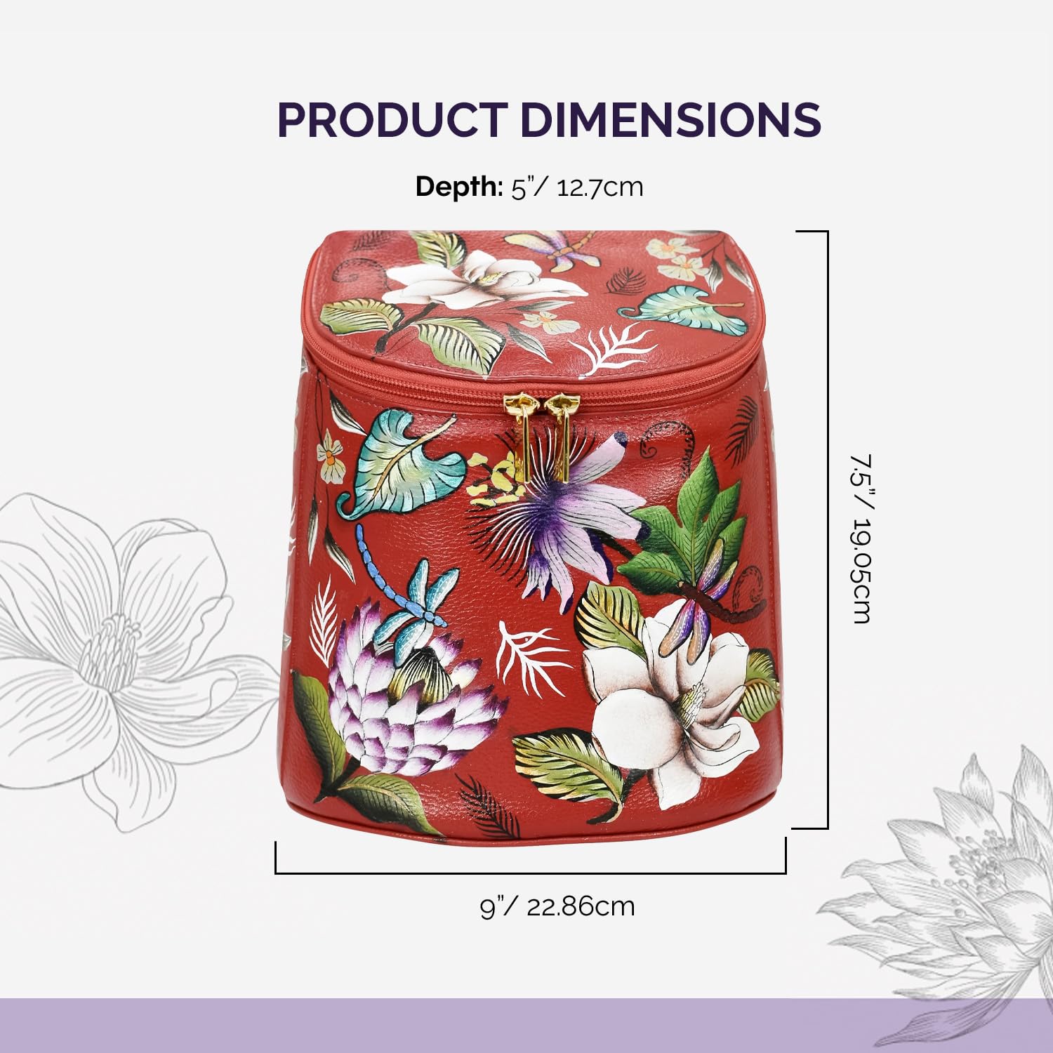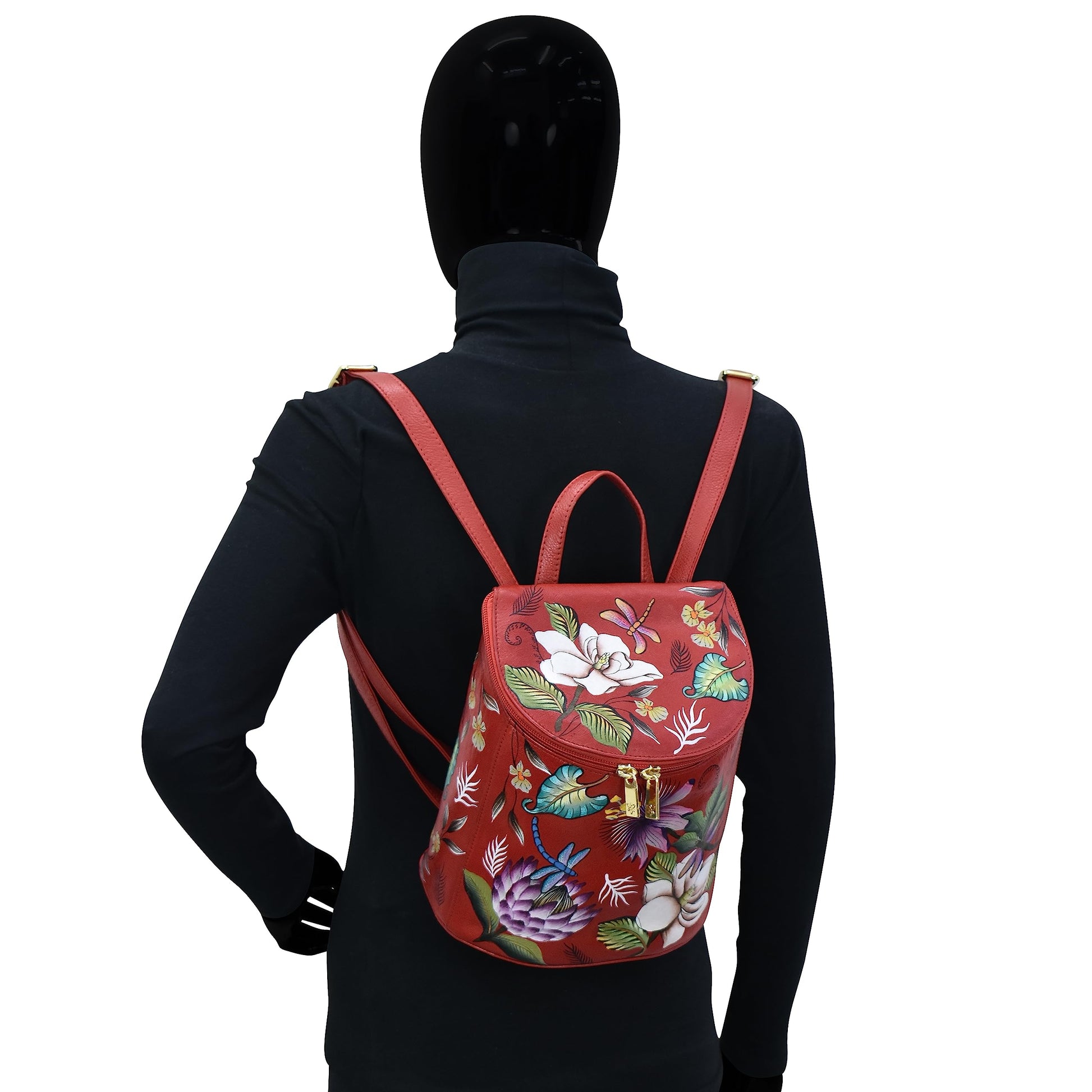 Anuschka Women’s Hand-Painted Genuine Leather Bucket Backpack - Crimson Garden