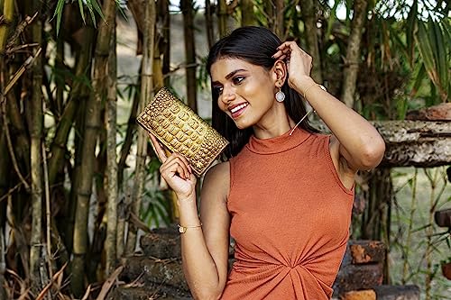 - CROC EMBOSSED DESERT GOLD ARTWORK - Each wallet is hand-painted to create a piece of art inspired by nature and vintage themes. Bring your croc design to life with embossed finishes to create a metallic effect painted in a soft yellow gold colour