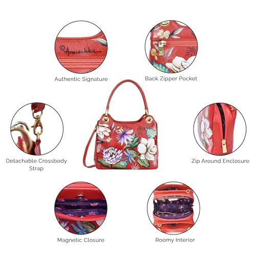 Anuschka Women’s Hand-Painted Genuine Leather Satchel With Crossbody Strap - Crimson Garden