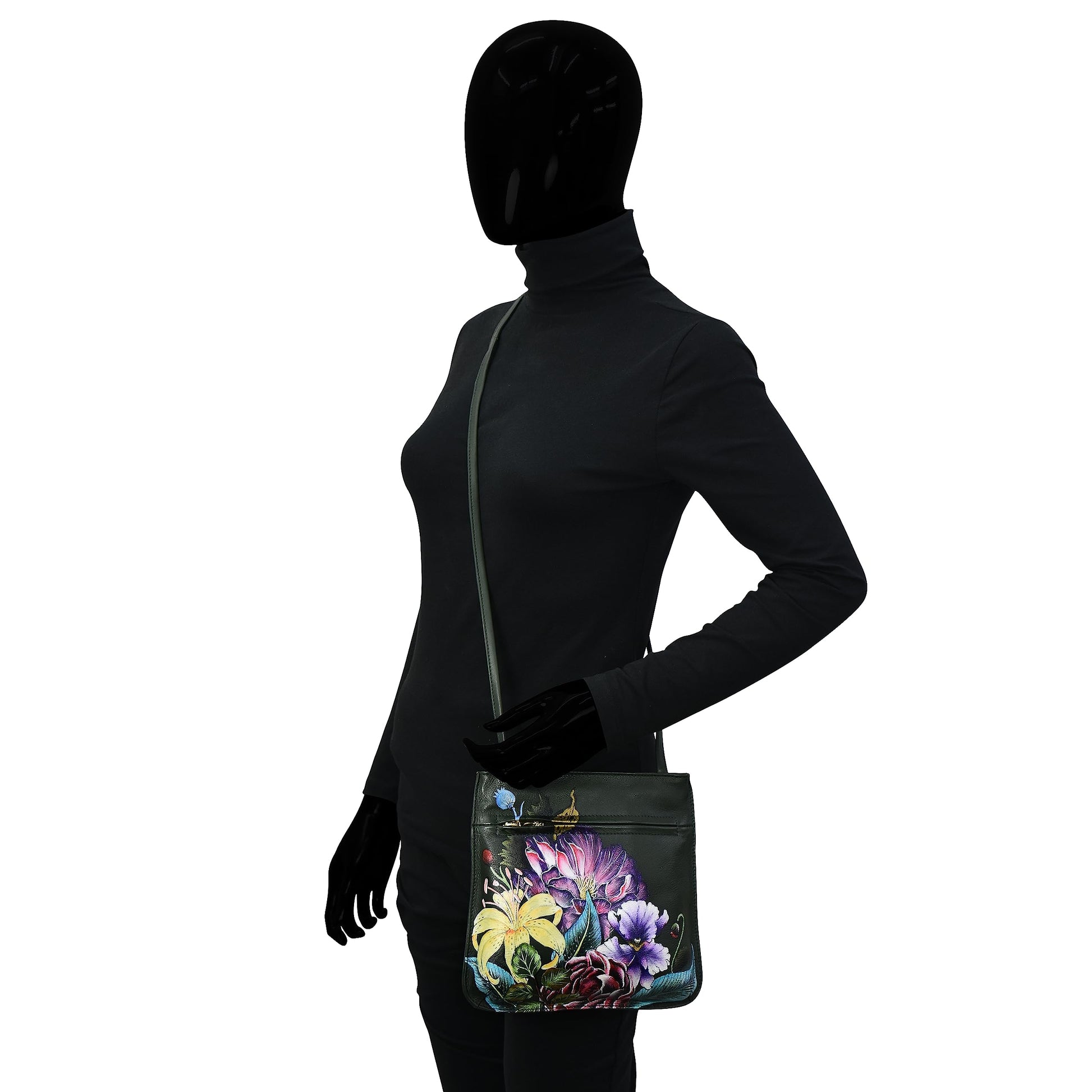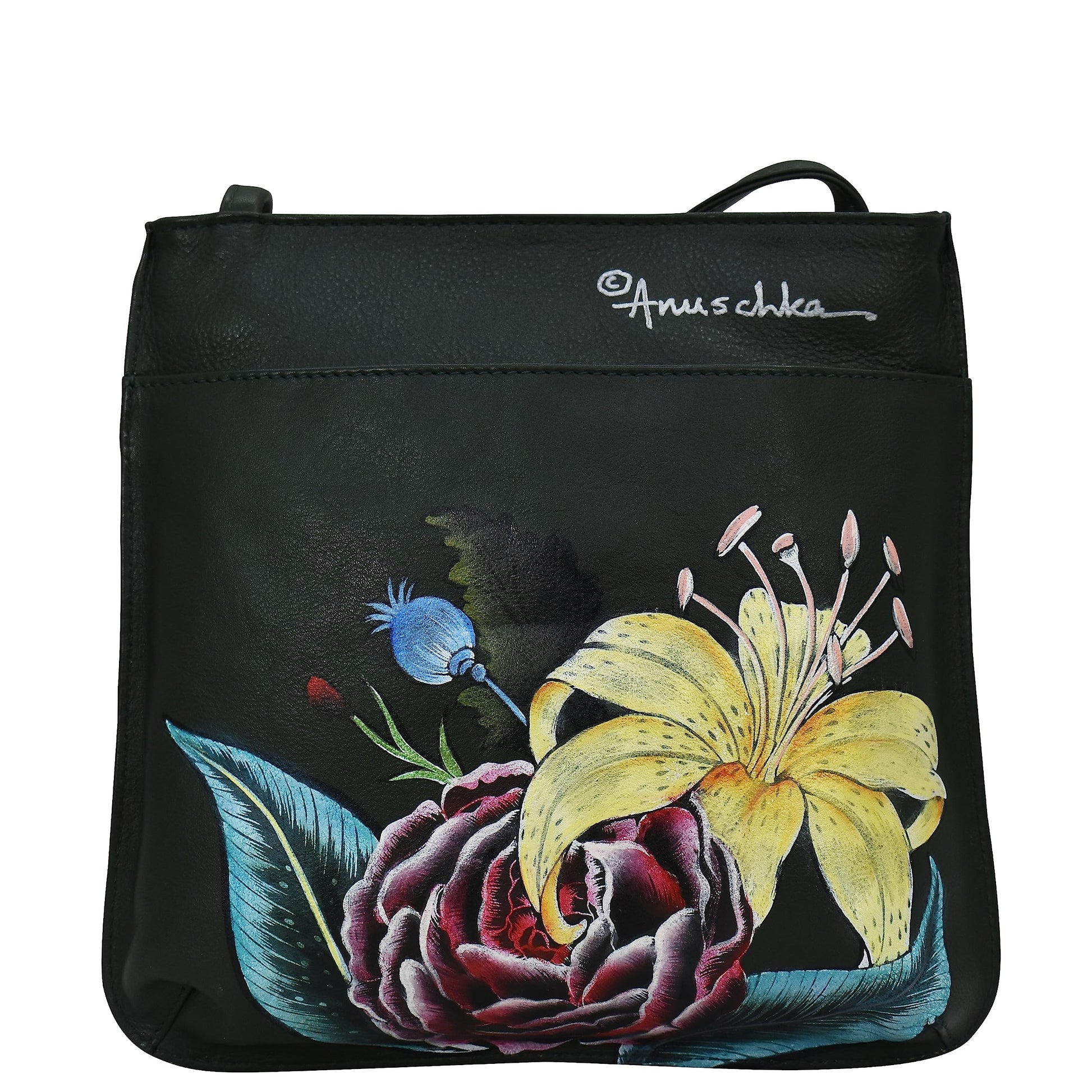 Anuschka Women’s Hand-Painted Genuine Leather Slim Crossbody with Front Zip - Vintage Floral