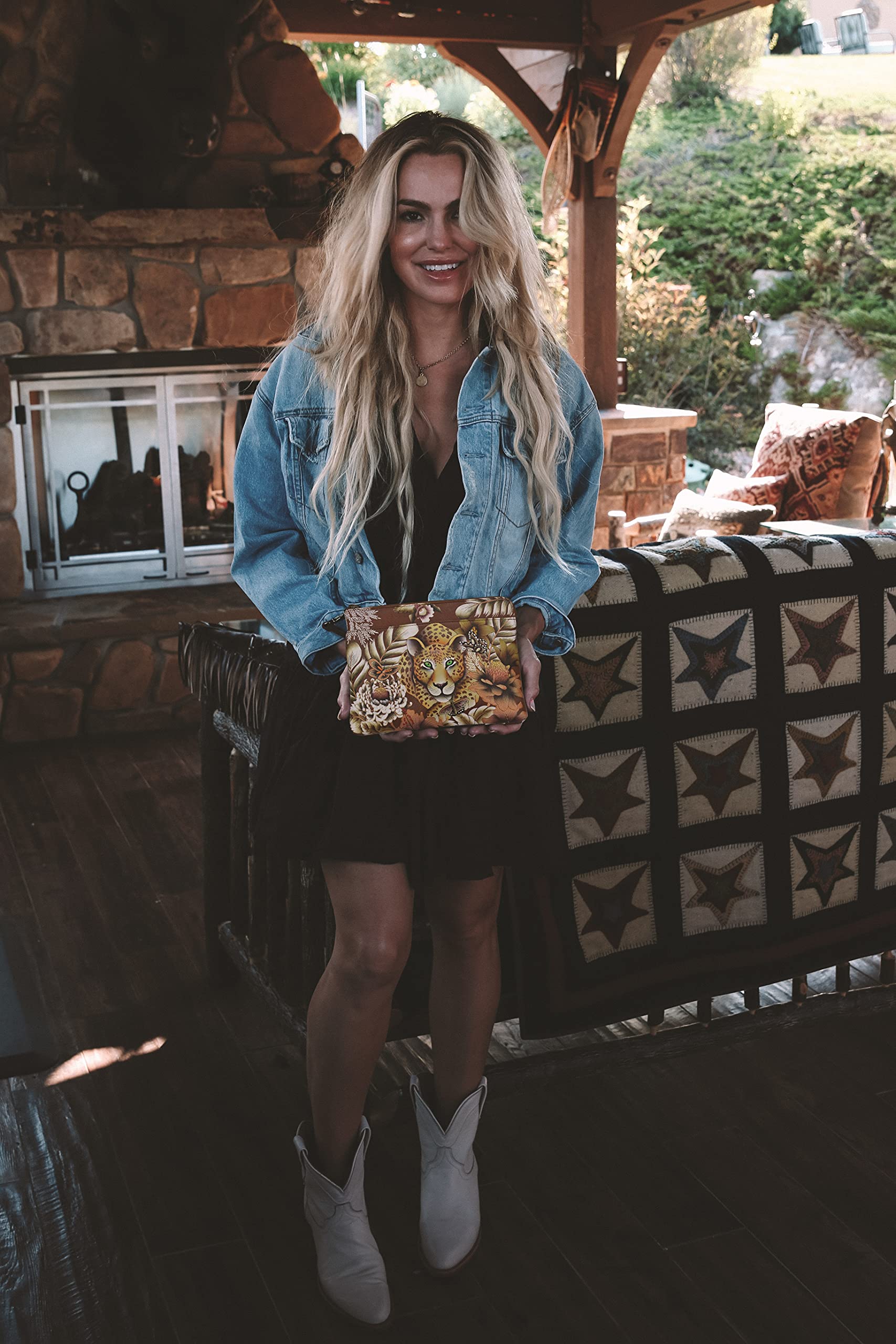 Anuschka Women’s Hand-Painted Genuine Leather Three-In-One Clutch - Cleopatra's Leopard Tan