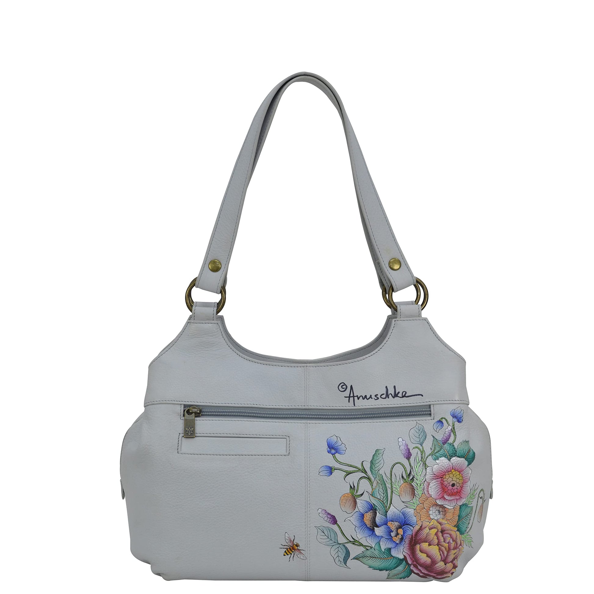 Anuschka Women’s Hand-Painted Genuine Leather Triple Compartment Large Satchel - Floral Charm