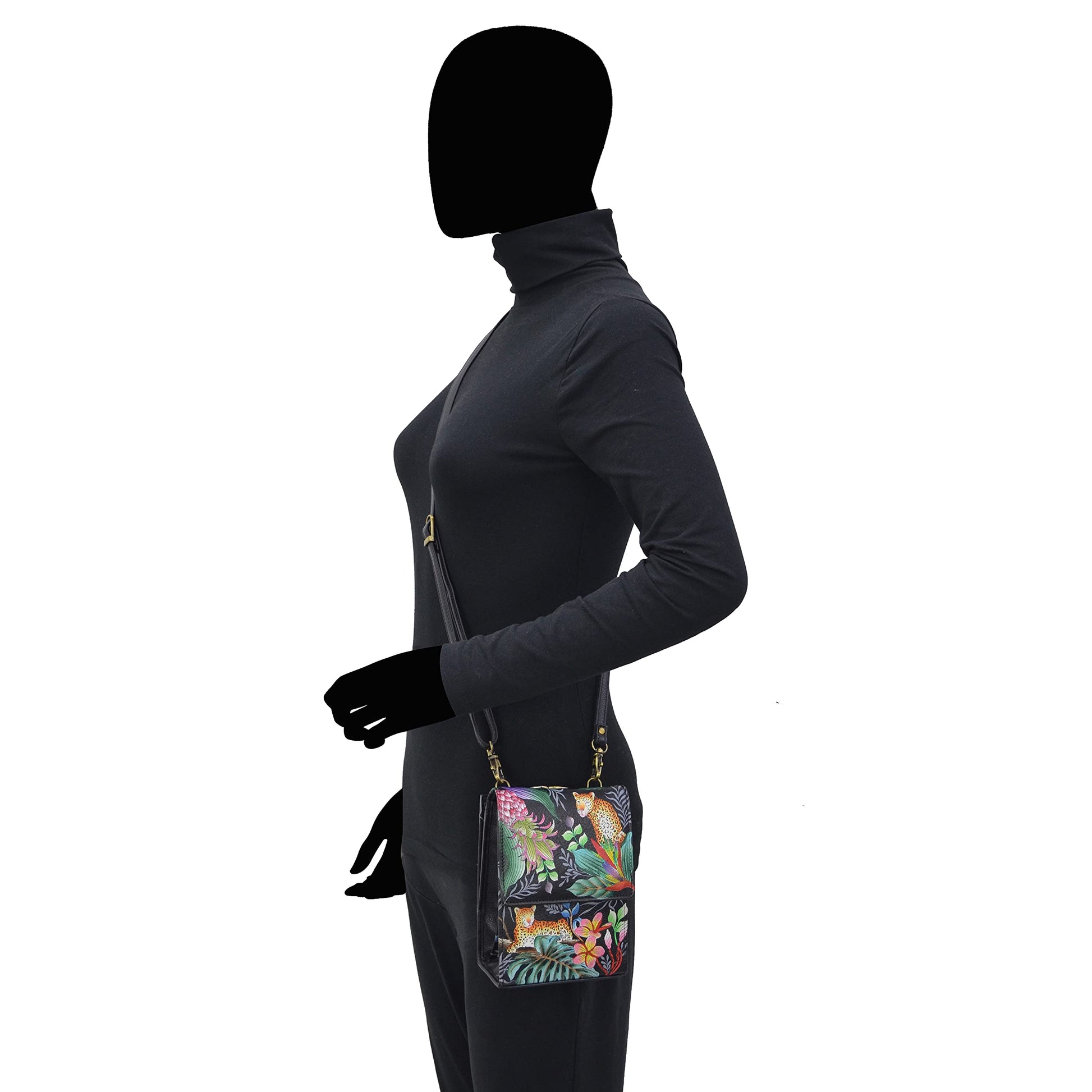 Anuschka Women's Hand Painted Genuine Leather Triple Compartment Crossbody Organiser - Jungle Queen