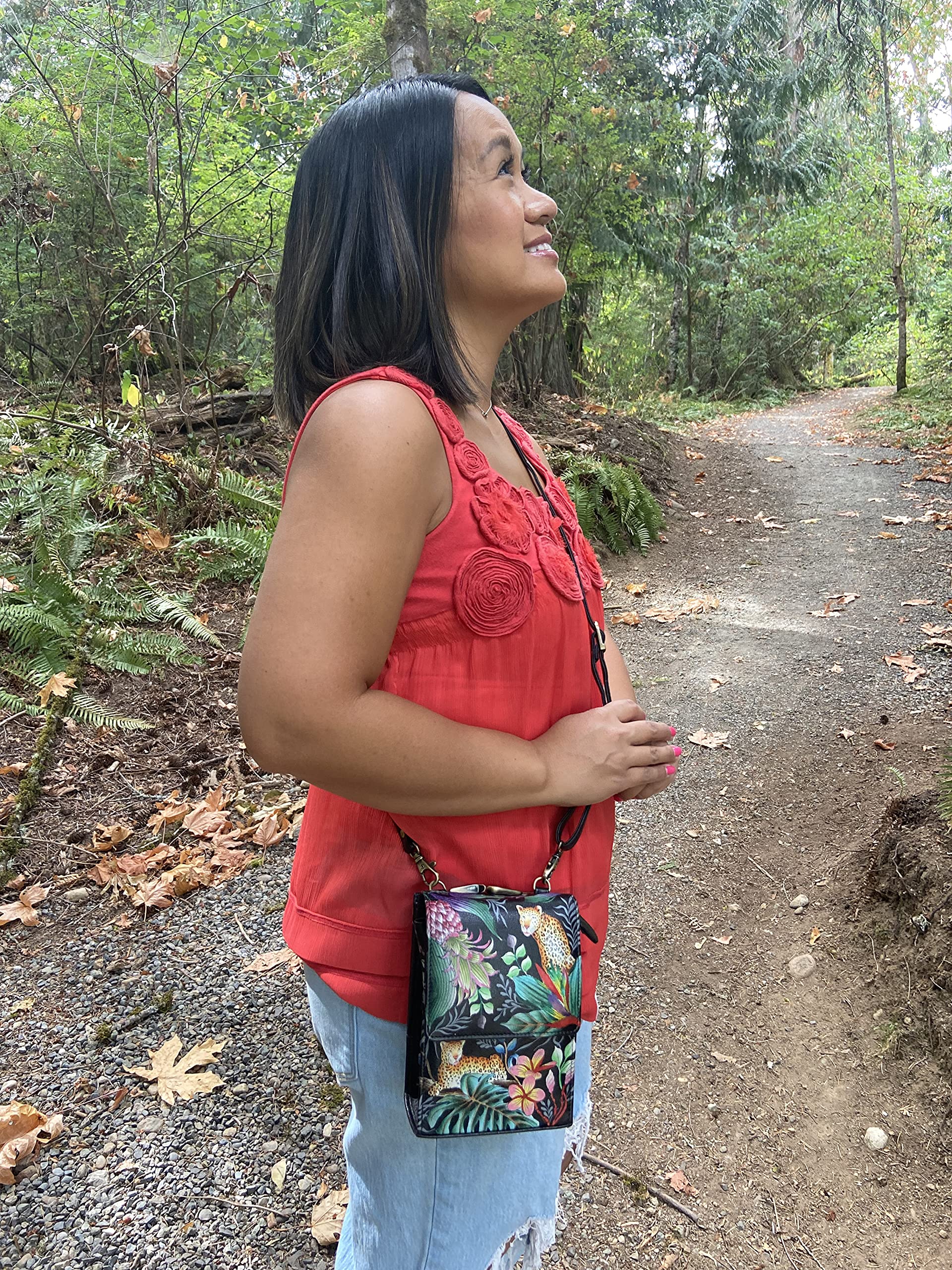 - JUNGLE QUEEN ARTWORK - Each bag is hand-painted to create a piece of art inspired by nature and vintage themes. The Jungle Queen artwork takes you deep into the wild with its leopards waiting in colorful, lush flora painted on a black surface