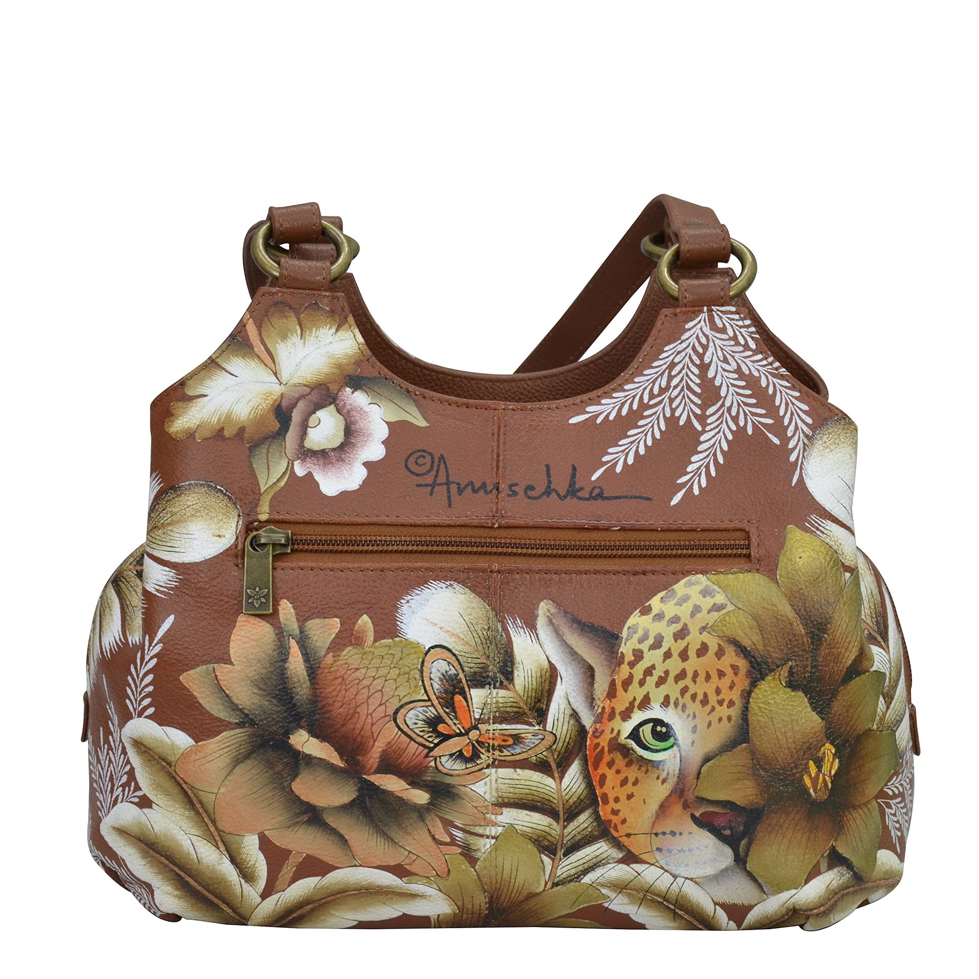 Anuschka Women's Hand Painted Genuine Leather Triple Compartment Satchel - Cleopatra's Leopard Tan