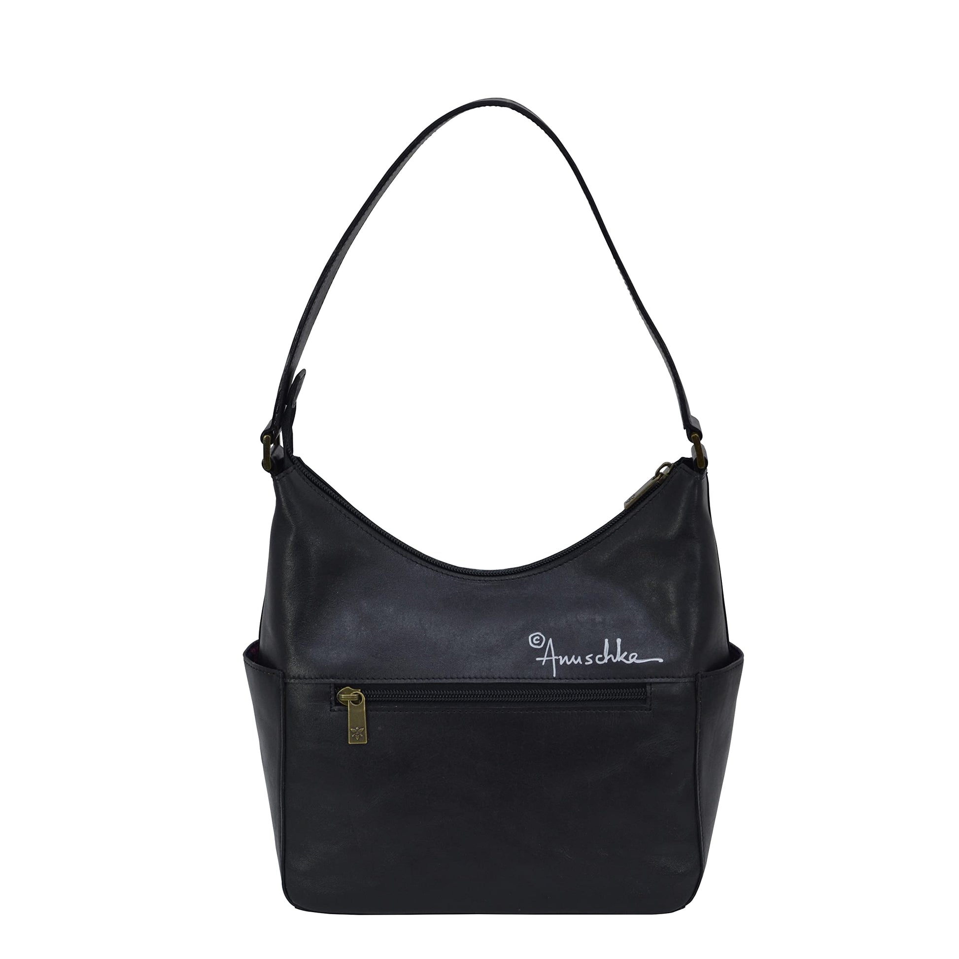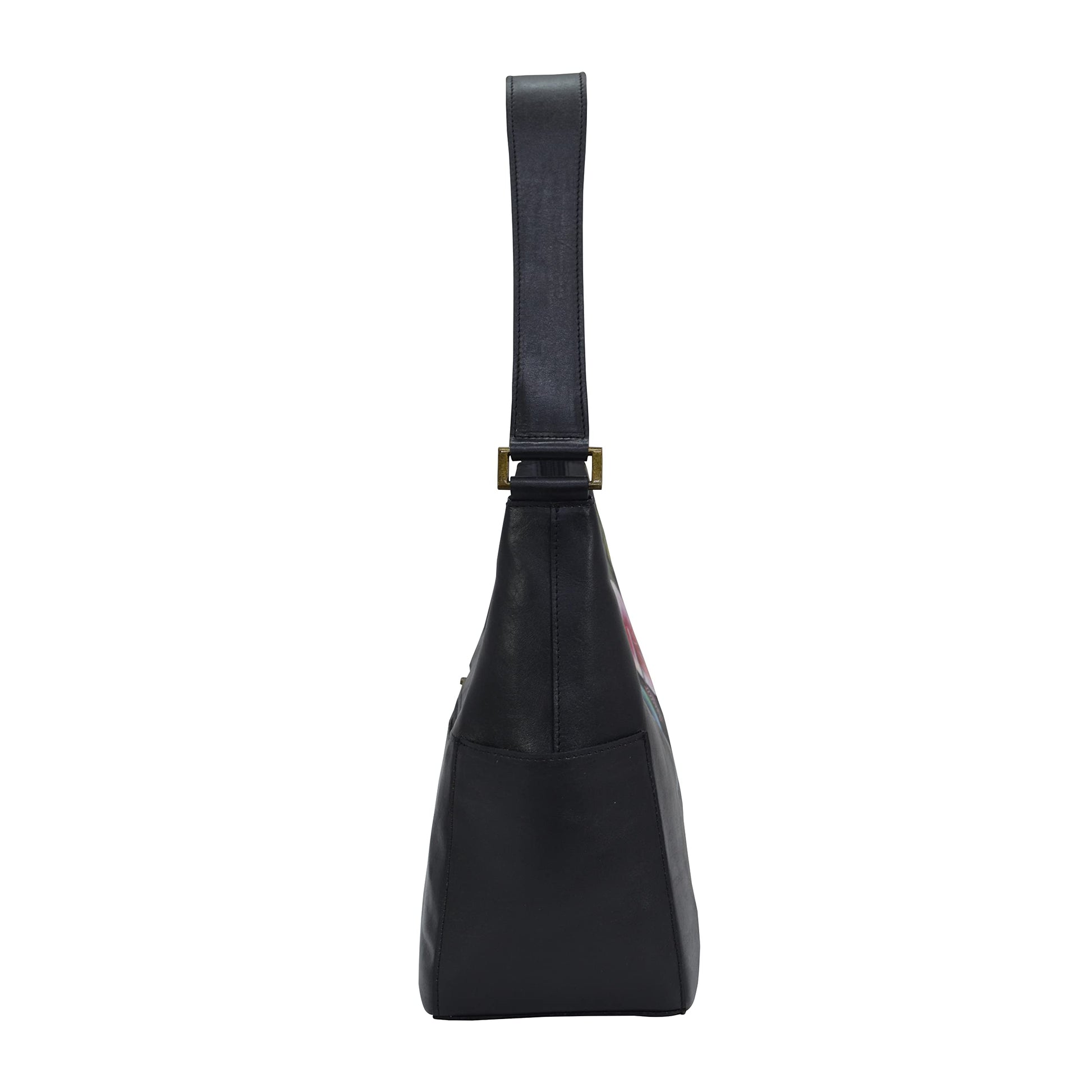 Anuschka Women's Hand-Painted Genuine Vegetable Tanned Leather Classic Hobo With Side Pockets - Hummingbird Black