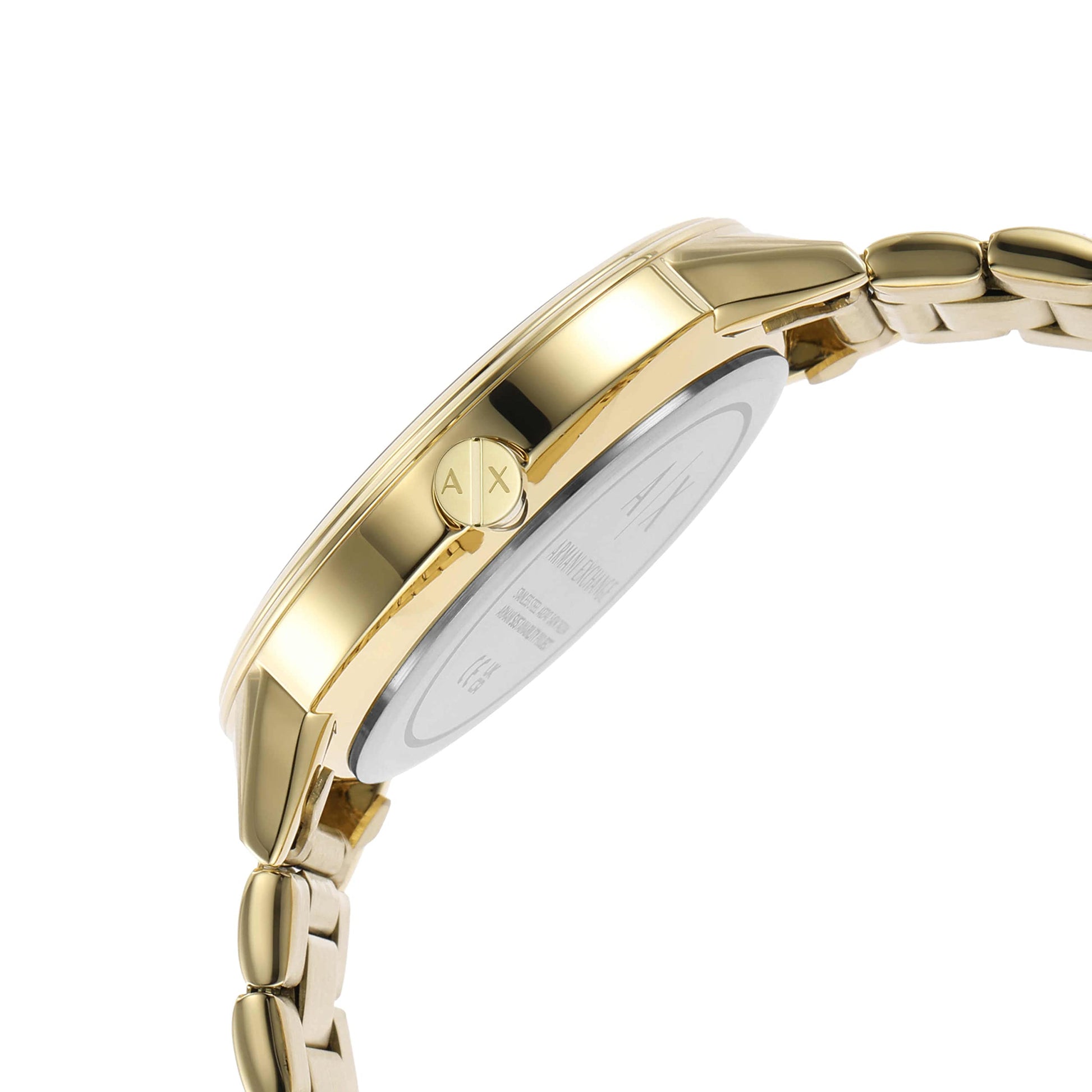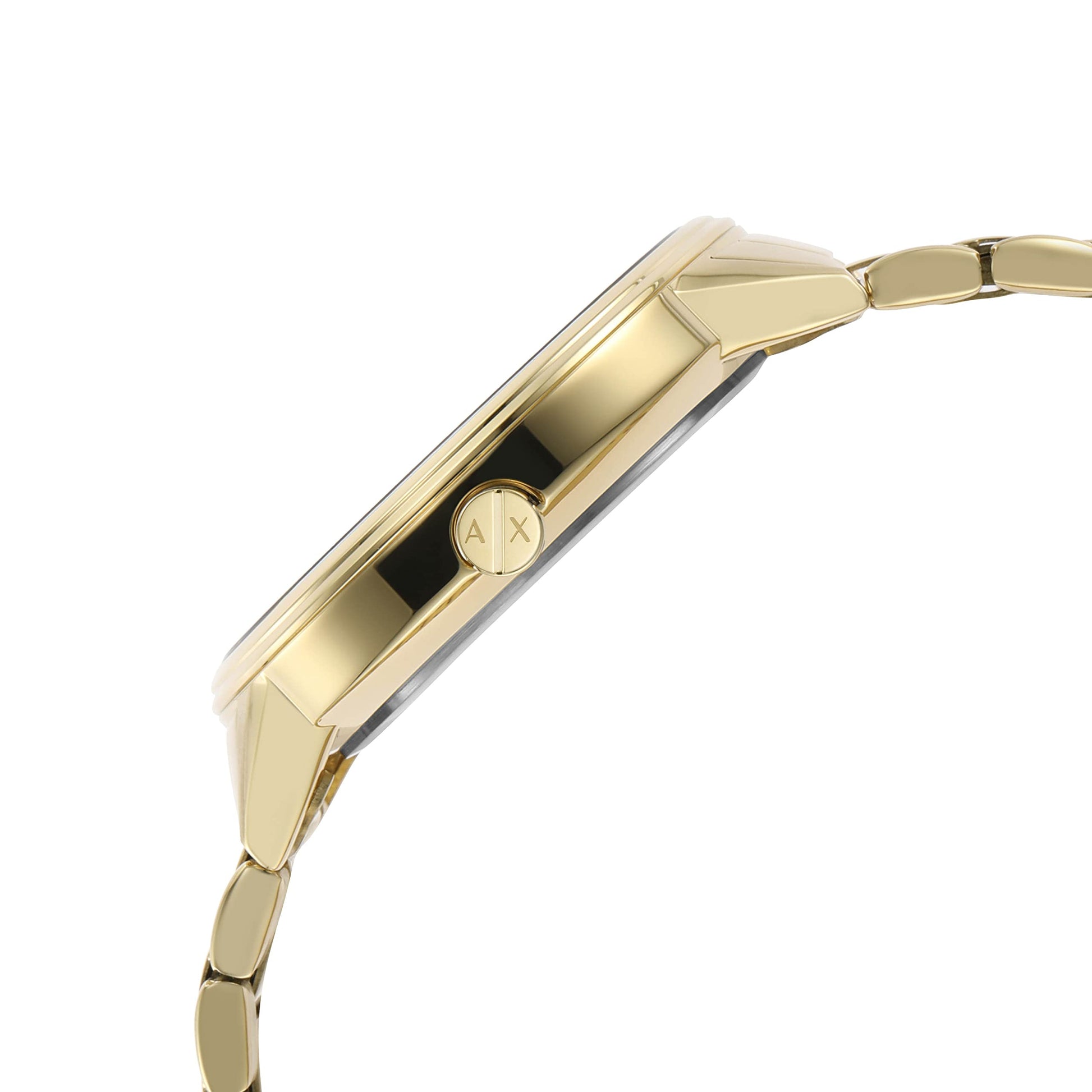 - Gold plated stainless steel bracelet with 2 pusher foldover clasp closure; interchangeable with armani exchange 20mm watch straps