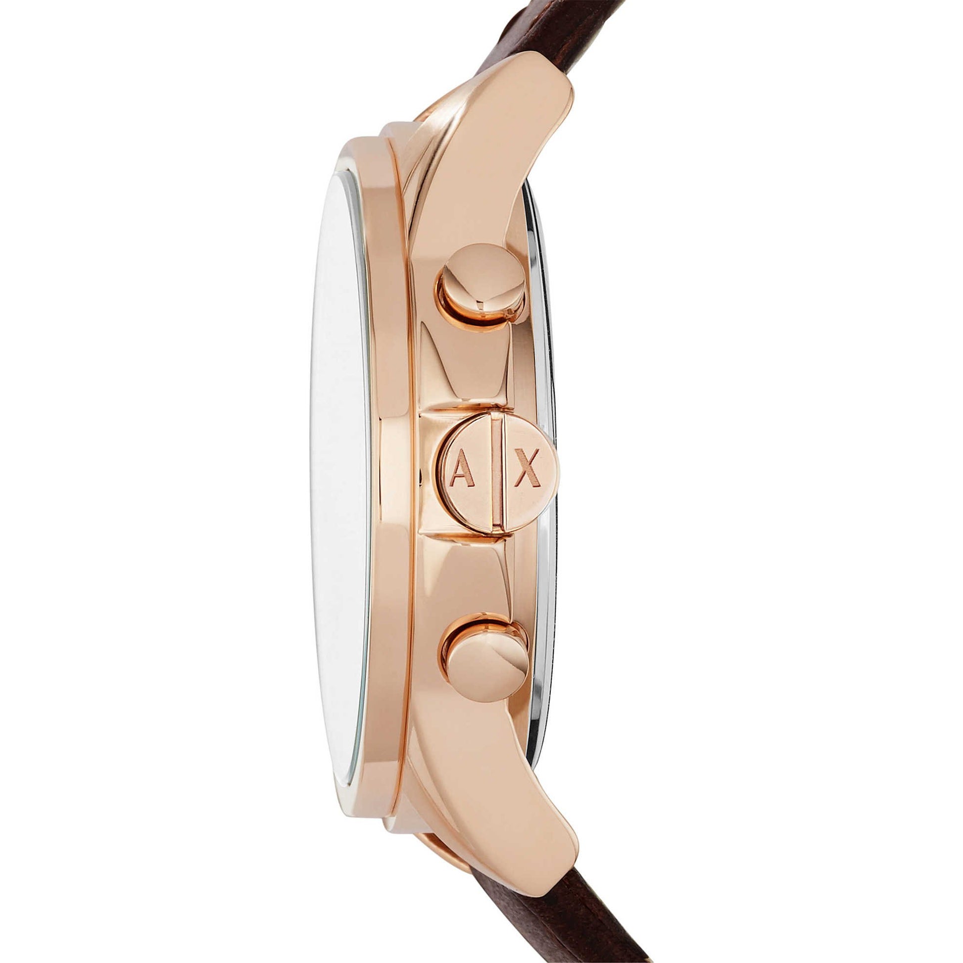 Details: The rose gold-tone and navy blue dial is the star of the Armani Exchange Outer Banks watch. Three sub-dials offer functionality, and the A|X logo provides modern style.