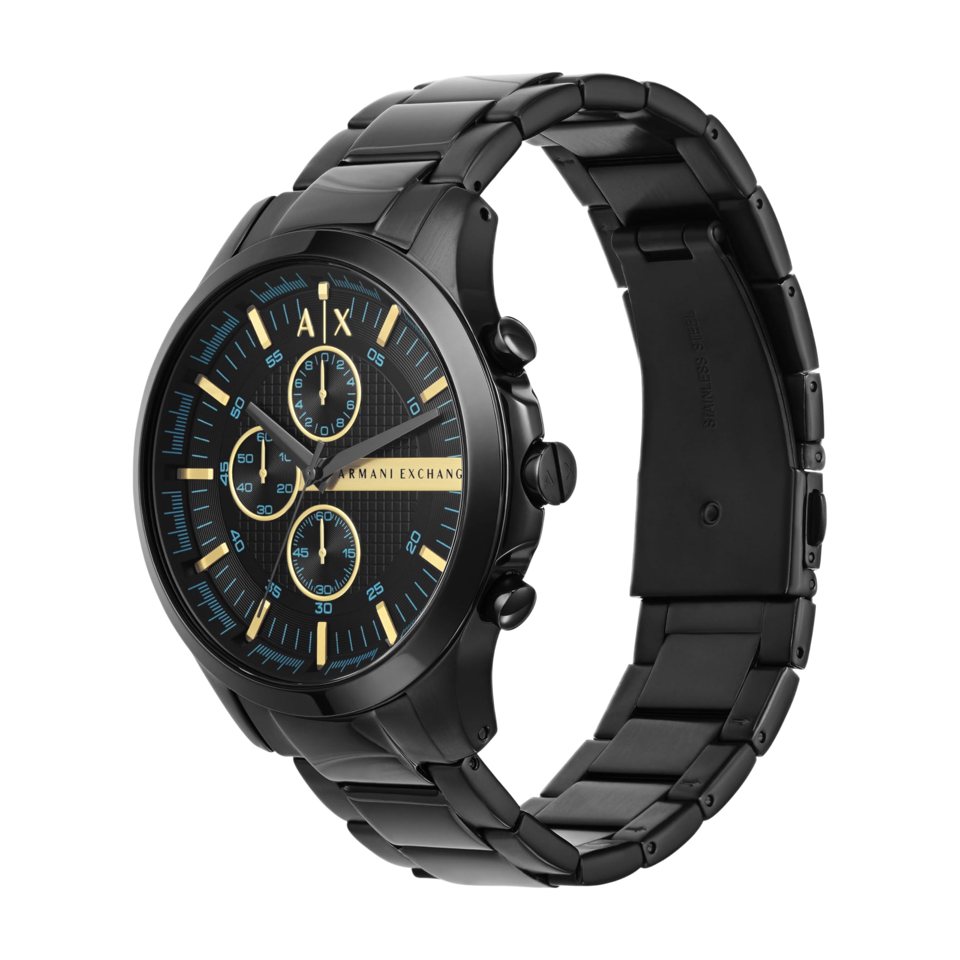 Details: In sleek black plating with gold-tone dial accents the Hampton Chrono collection by Armani Exchange delivers sophisticated style with a functional touch.