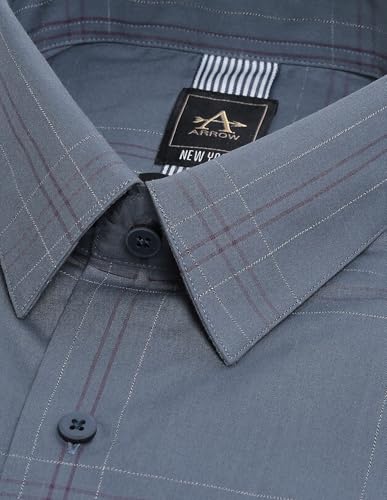 Arrow Men's Checkered Slim Fit Shirt (ANAISH1003_DK. Blue