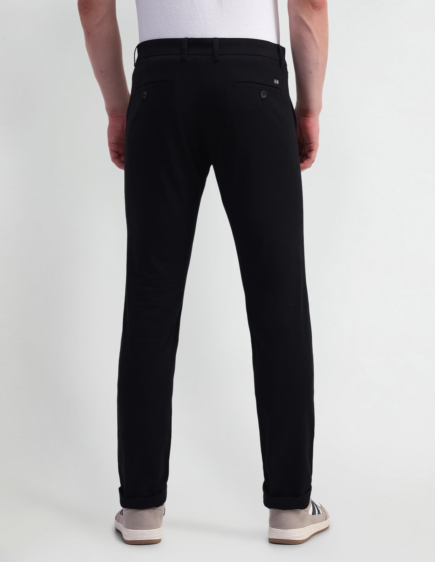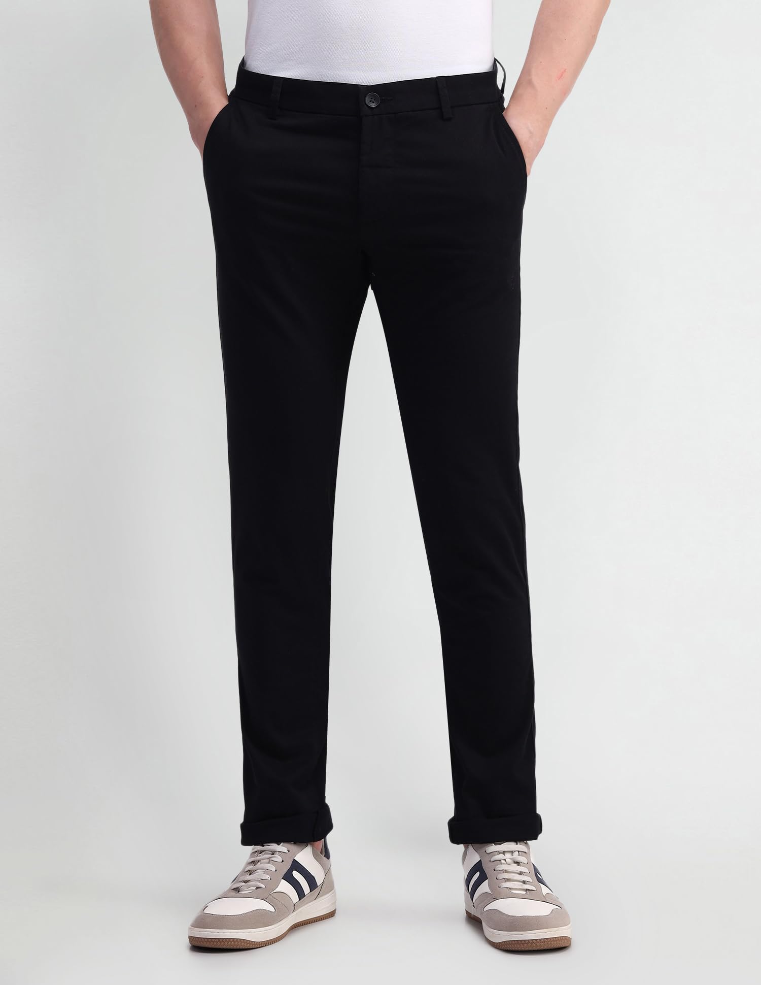 Arrow Men's Mid Rise Solid Slim Fit Acrylic Casual Trouser (ASCBTRO0002_Black_34)