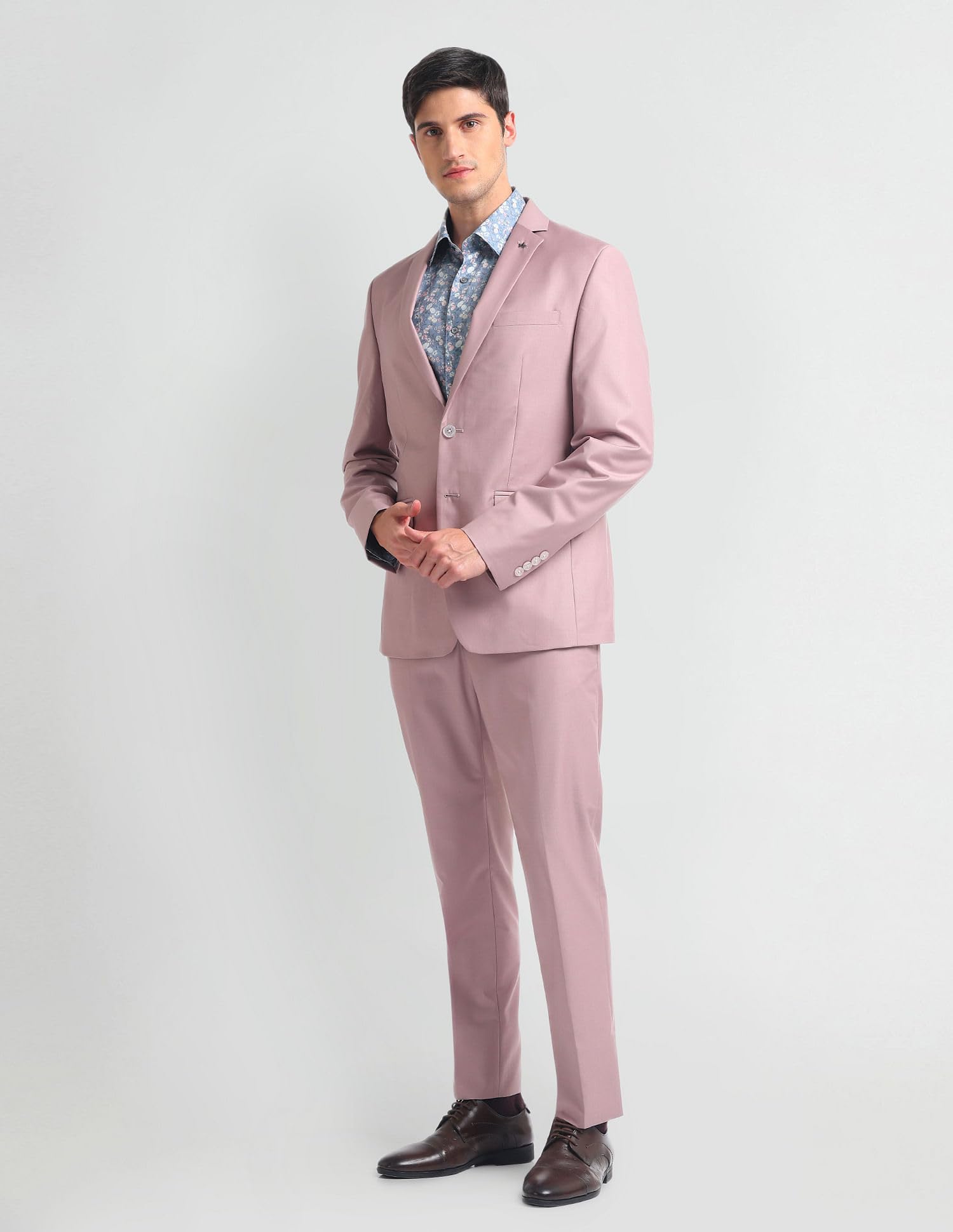 Arrow Men's Polyester Blend Single Breasted Business Suit Pants Set (ARAHSU5563_Pink