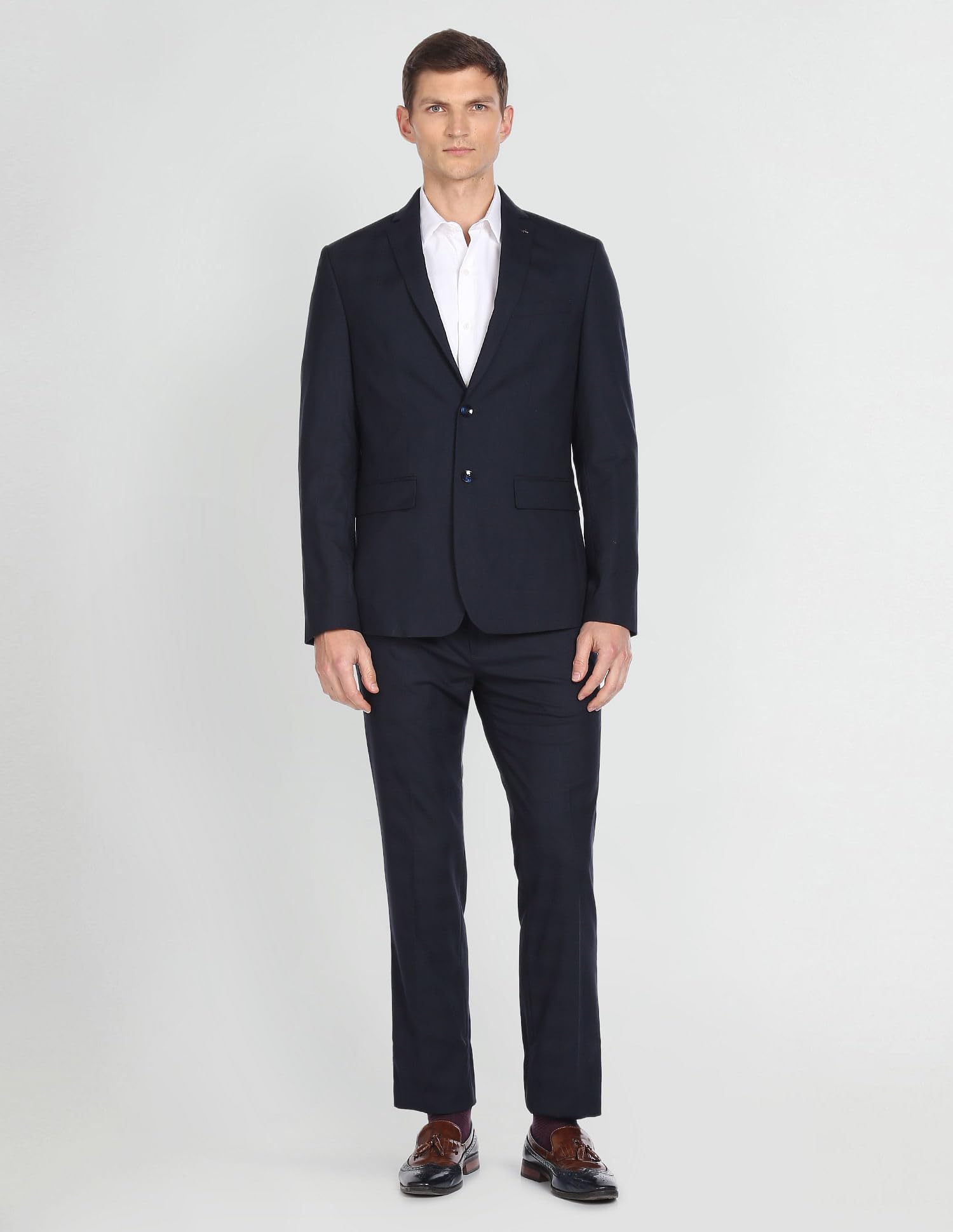 Arrow Men's Polyester Single Breasted Business Suit Pants Set (ARAFSU5522_Navy