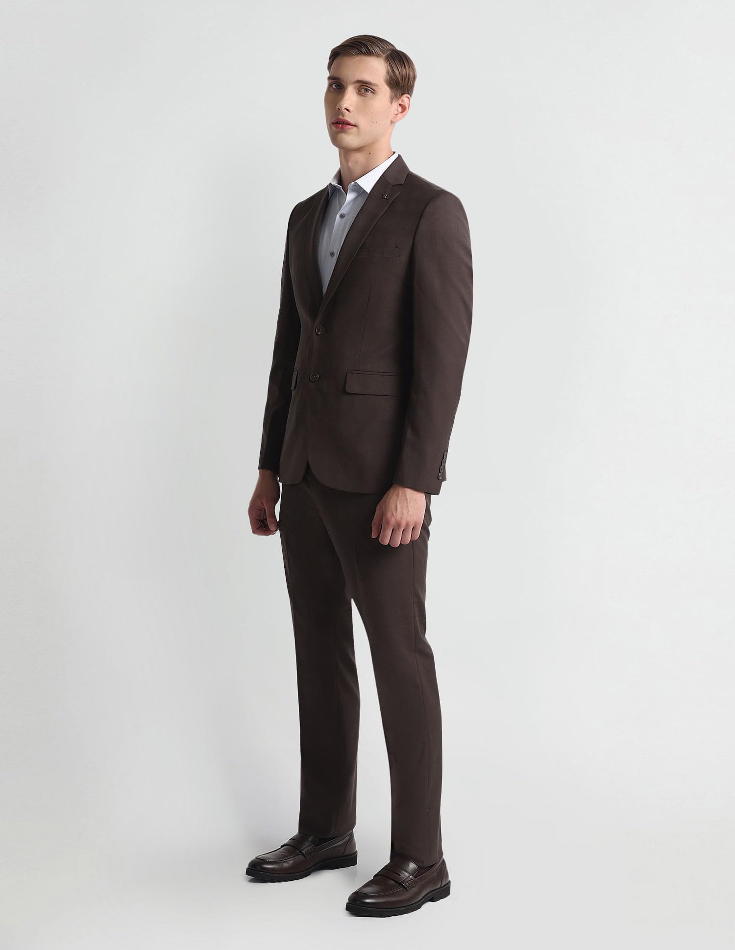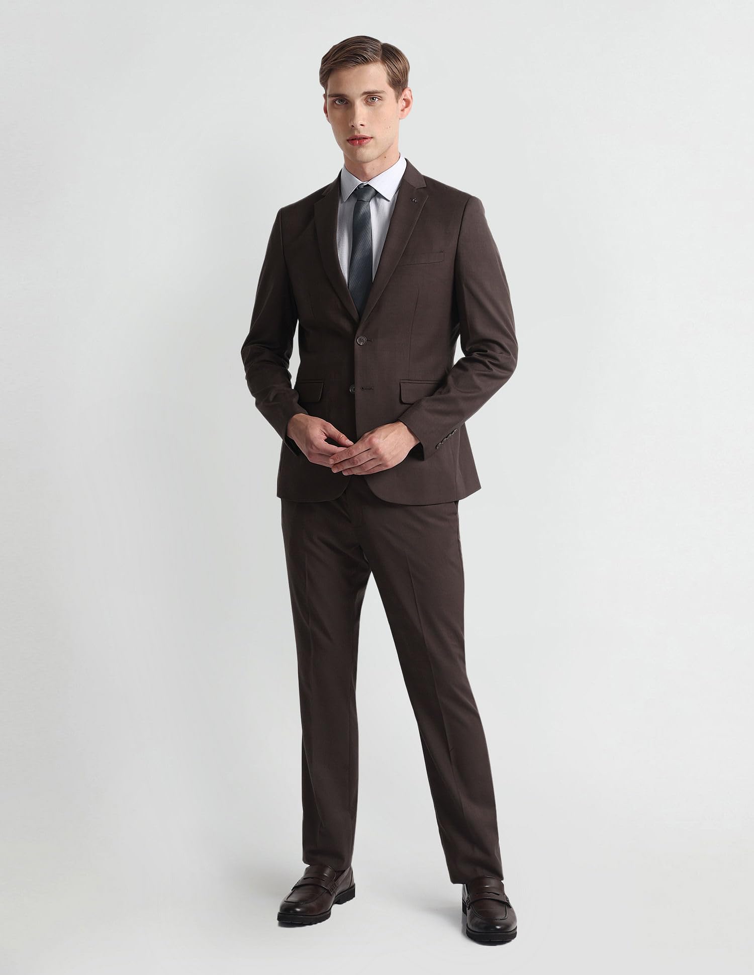 Arrow Men's Polyester Single Breasted Business Suit Pants Set (ARAHSU5534_Brown