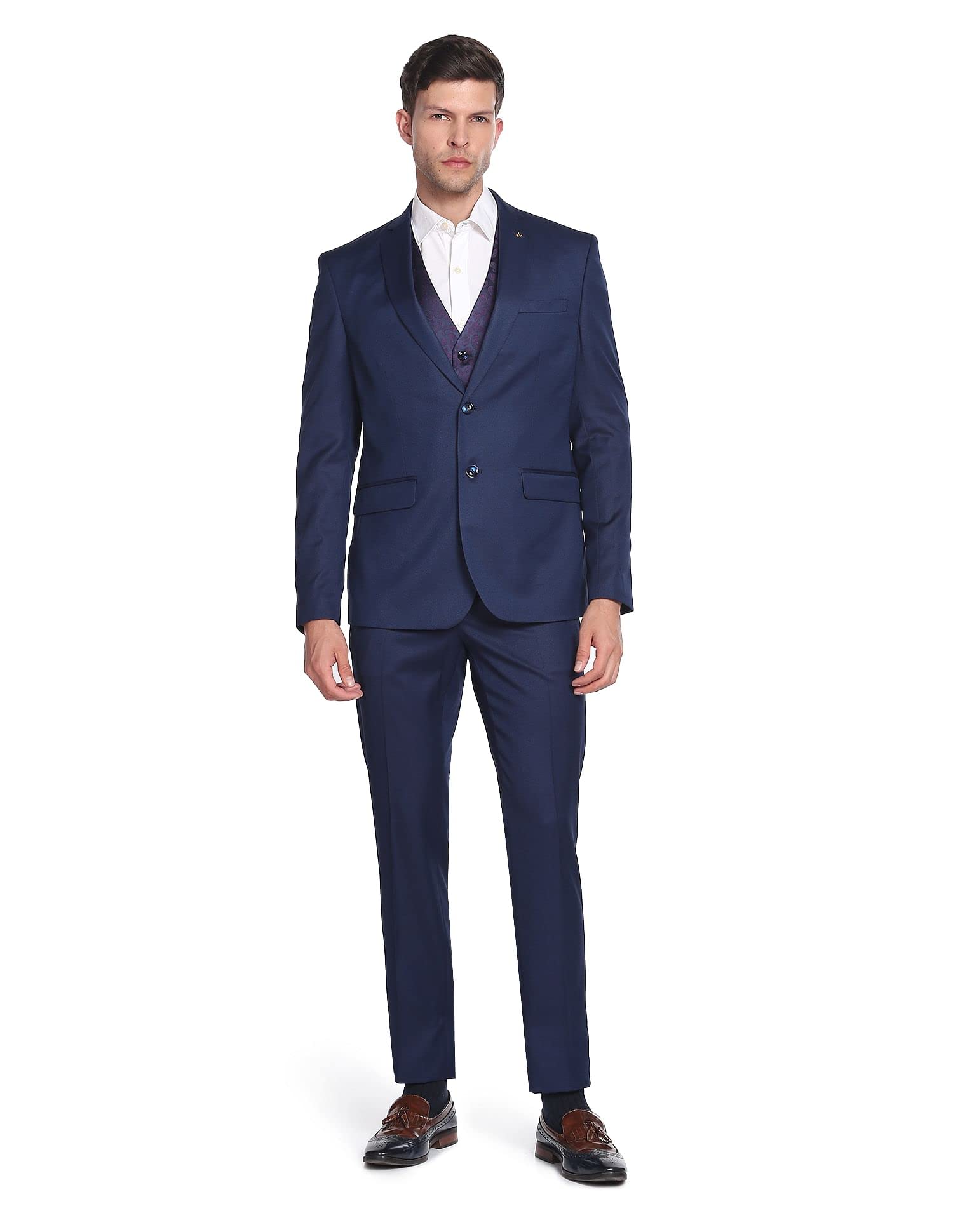 Arrow Men's Polyester Single Breasted Suits (ARAFSU5531_Blue