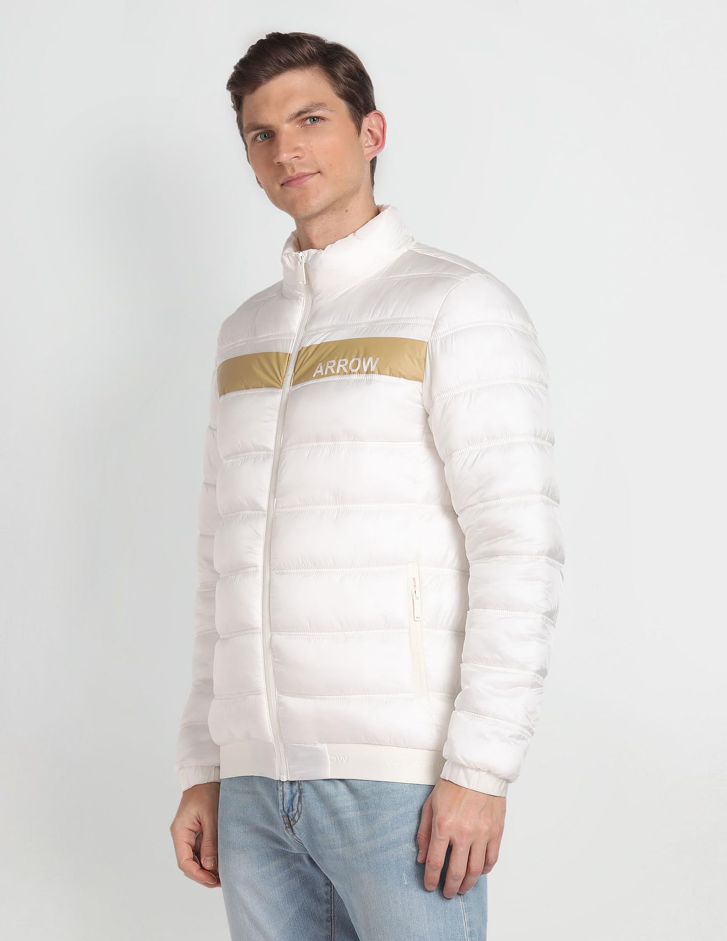 Arrow Men's Puffer Jacket (ASAGJK4749_Off White