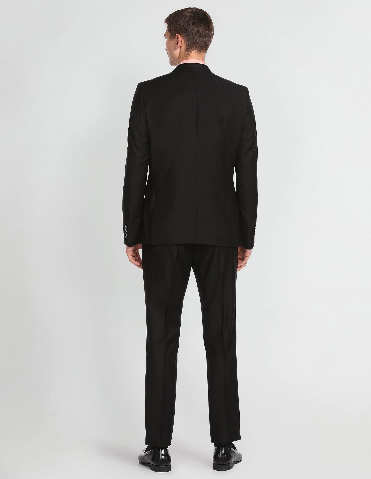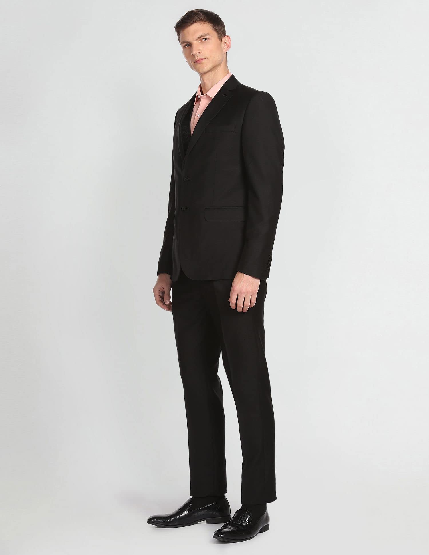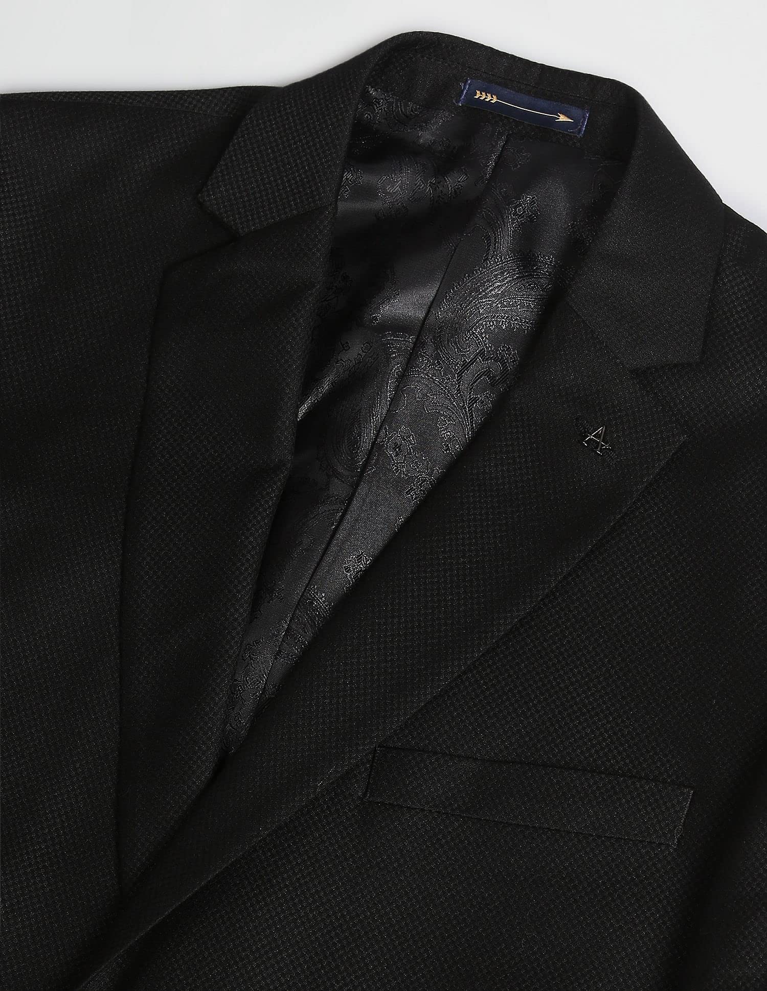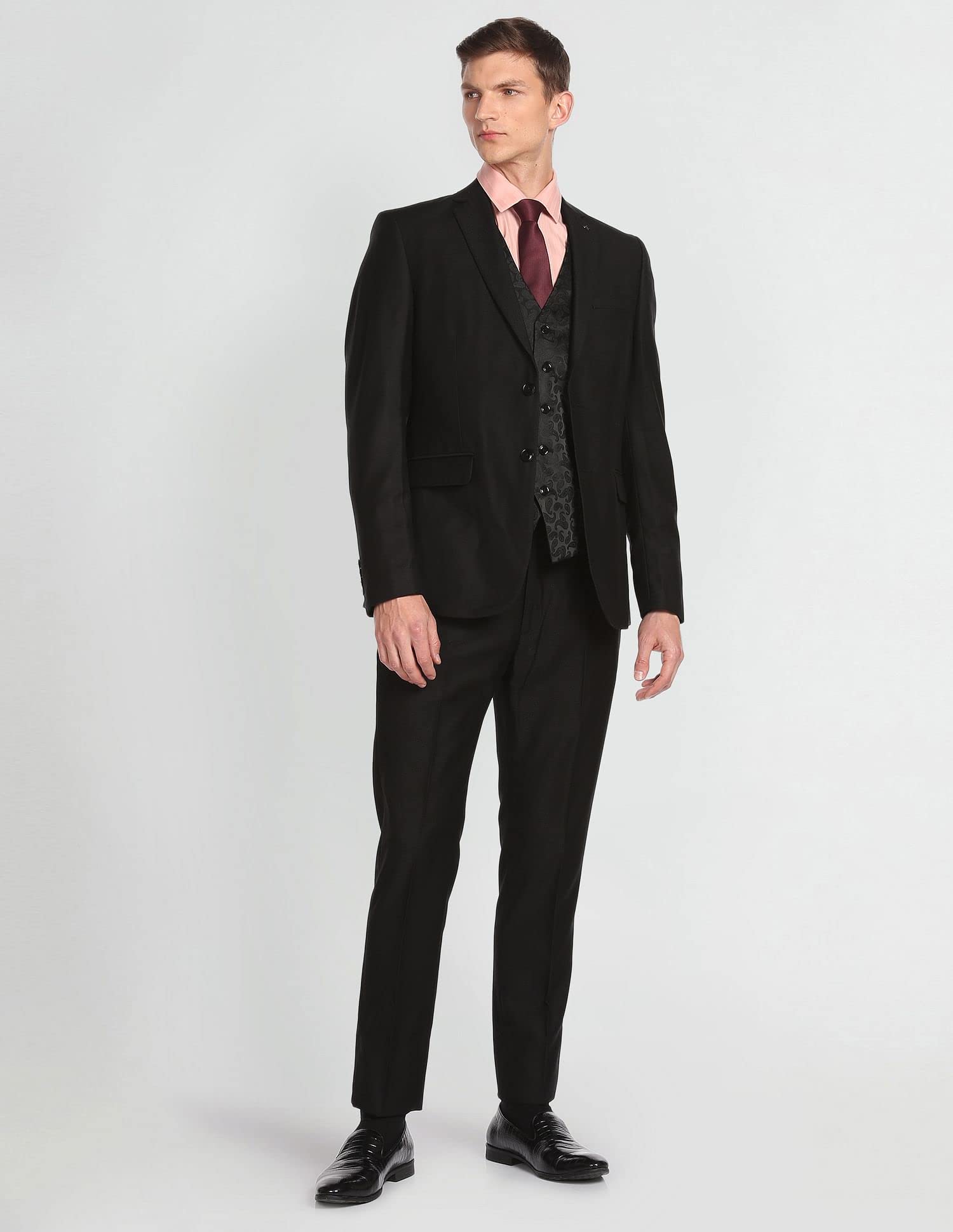 Arrow Men's Rayon Notch Lapel Collar Patterned Dobby Three Piece Suit (ARAFSU5515_Black