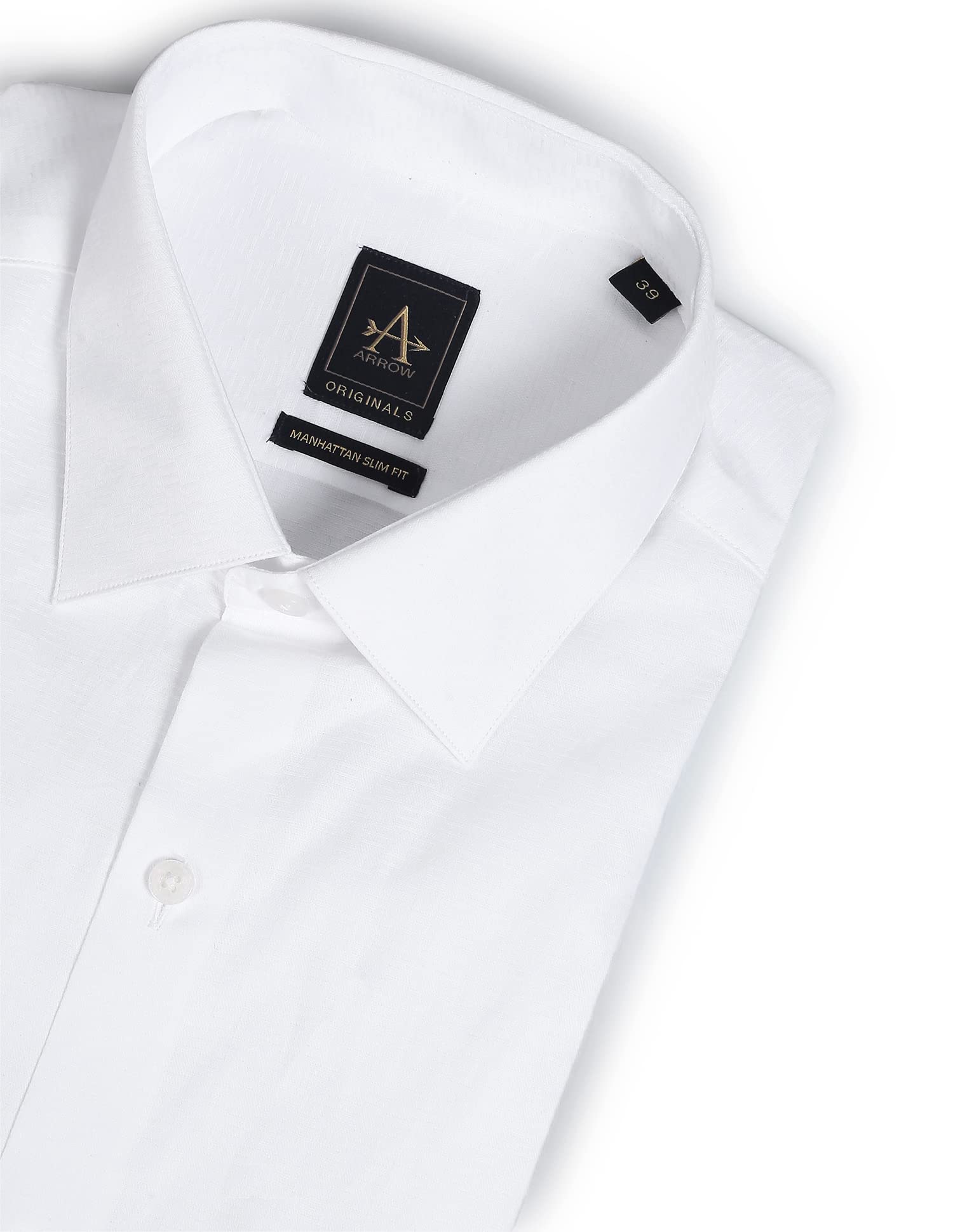 Recognizing the contemporary man's pursuit of excellence, Arrow stands out by offering finely designed and expertly tailored merchandise. Discover sophistication in Arrow's Slim Fit Formal Shirt. Crafted from premium cotton, this full sleeve shirt features a classic front, cutaway collar, and a well-defined back yoke along with a wrinkle-free quality. Combine with formal trousers and leather shoes for an effortlessly polished look.