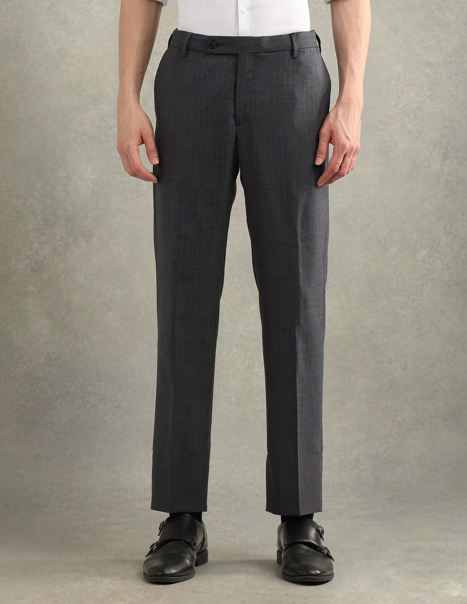 Arrow Men's Vertical Striped Tailored Fit Suit Dark Grey