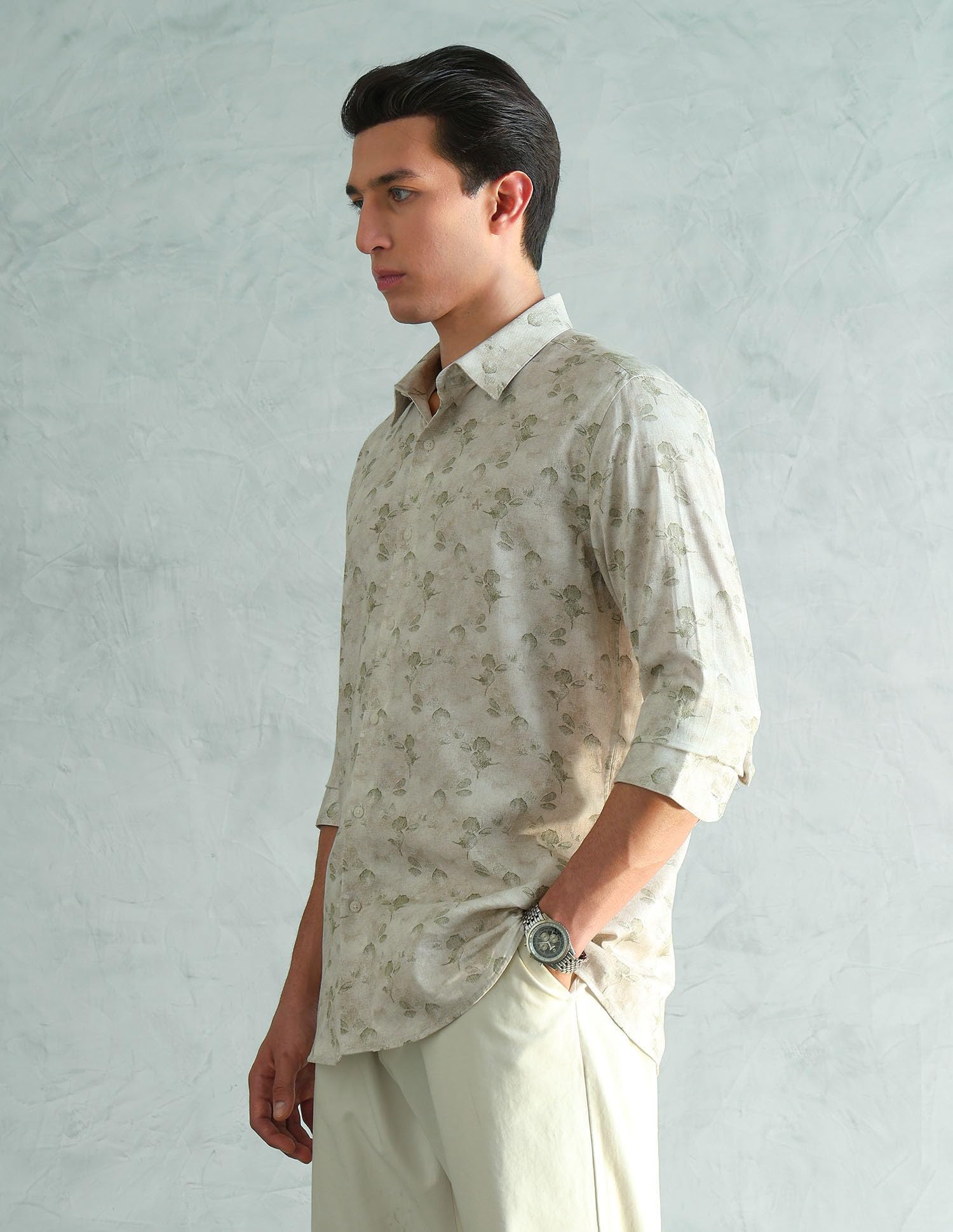 Brighten up your work wardrobe with this floral men's shirt, adding a touch of nature-inspired elegance to professional attire.