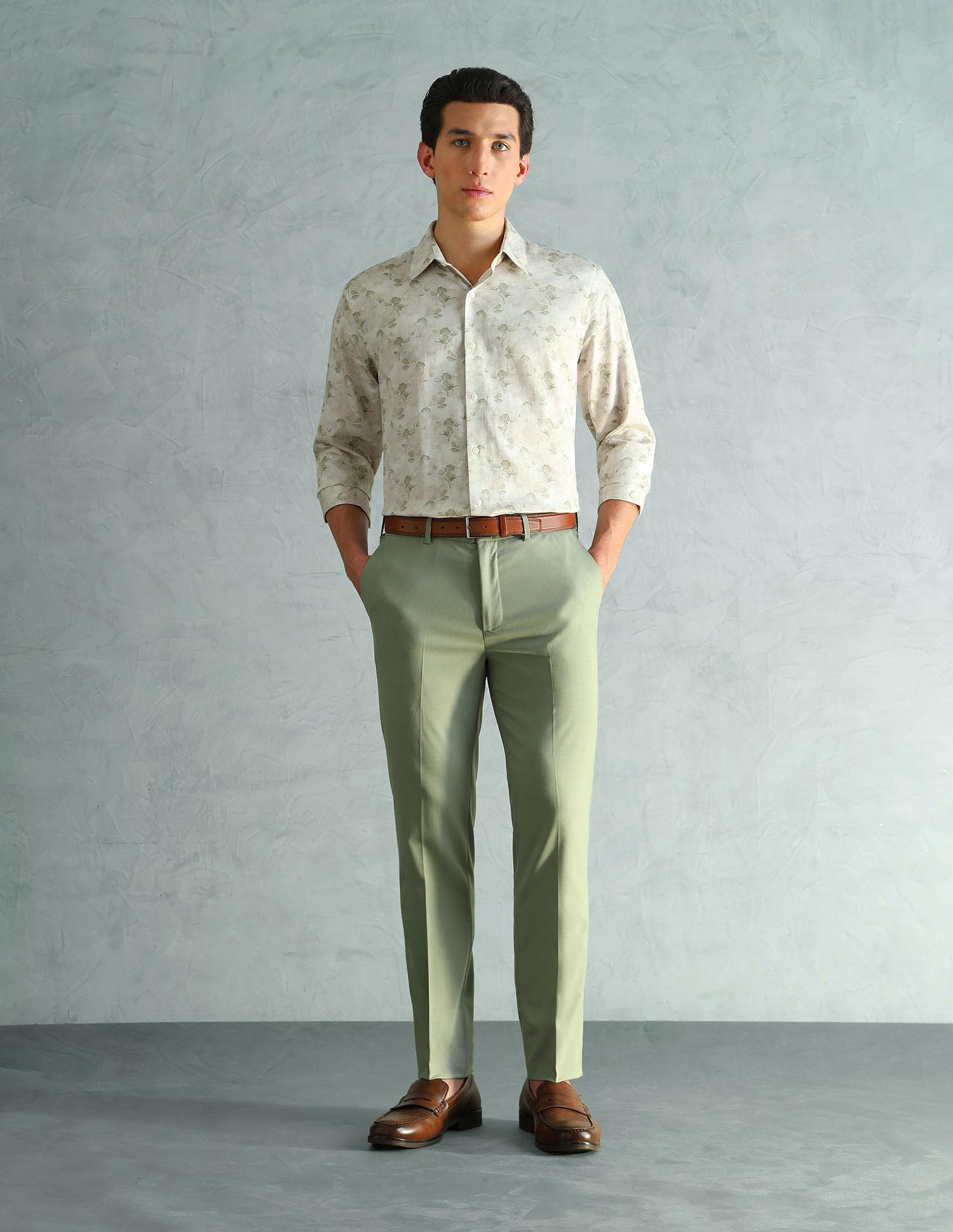 Arrow New York Men's Floral Slim Fit Shirt (ANAEOSH2912_Light Green