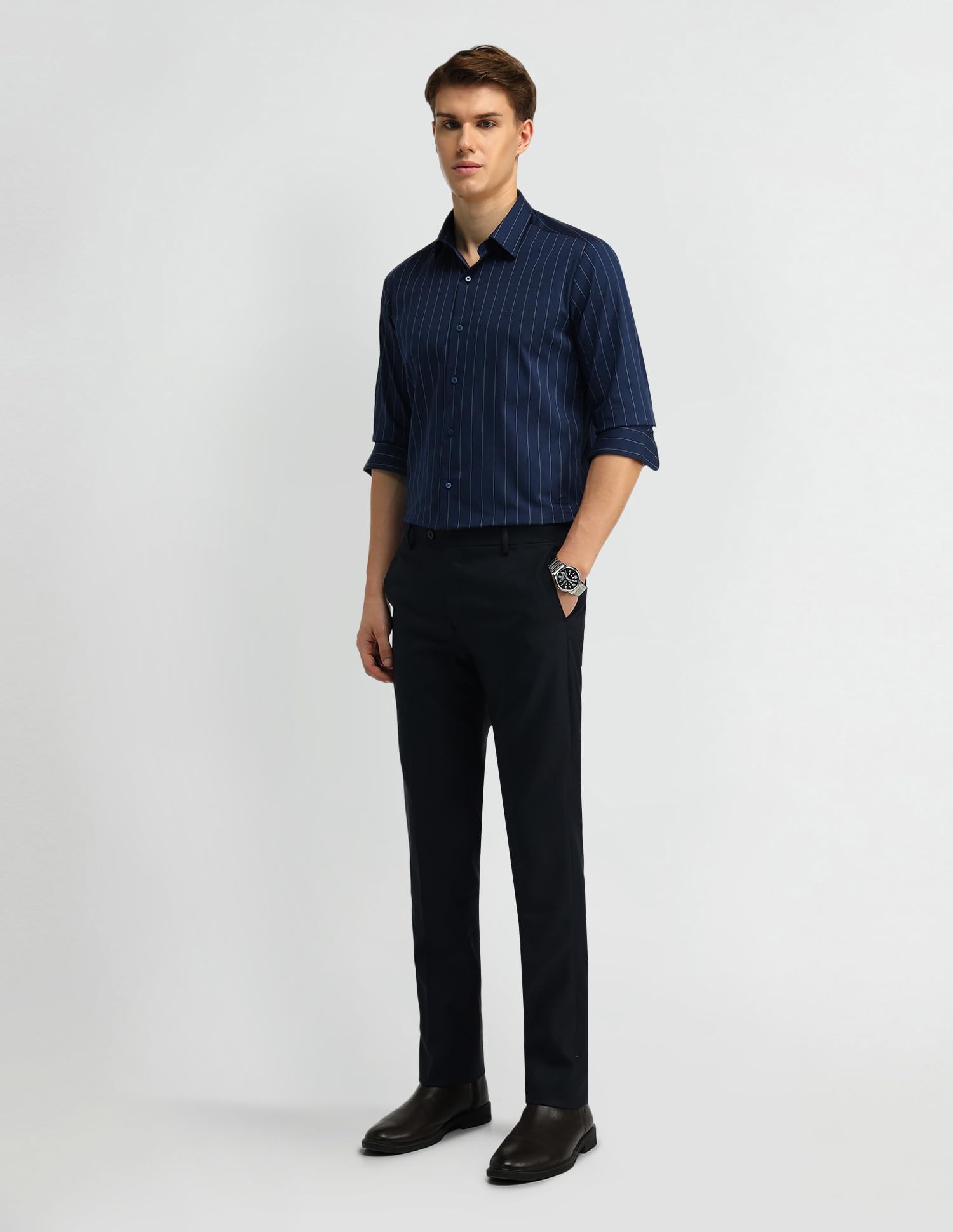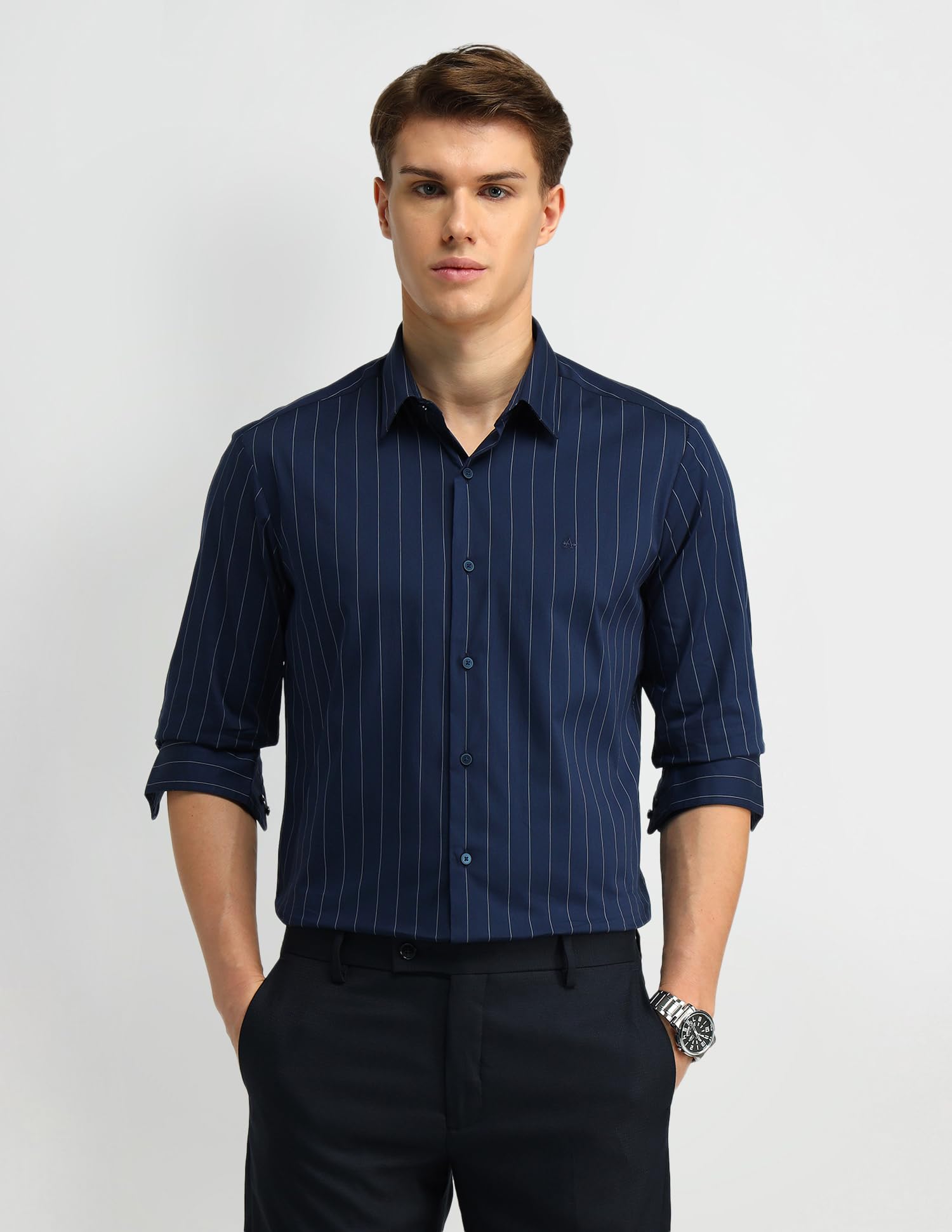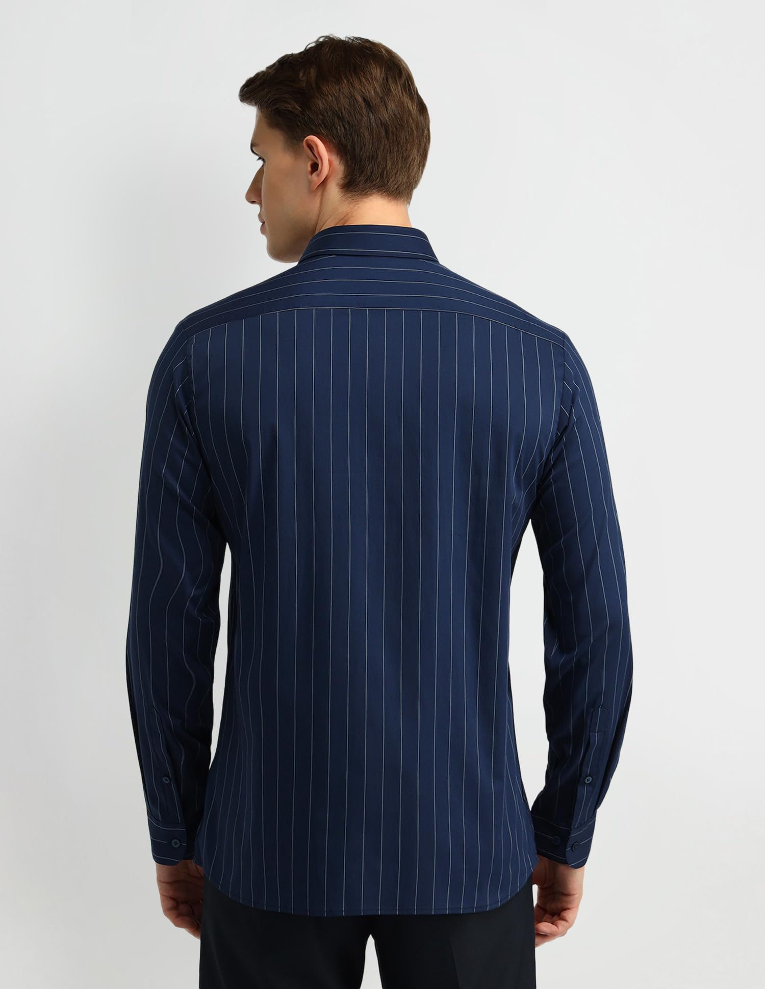 Arrow New York Men's Striped Slim Fit Shirt (ARES1244_Navy