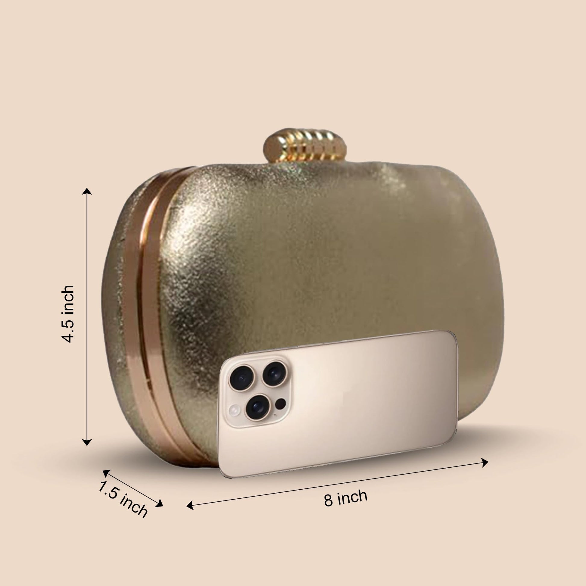 Artklim Golden Shimmery Party Clutch Bag For Women with Detachable Strap