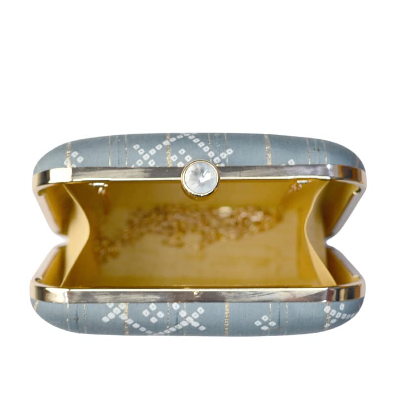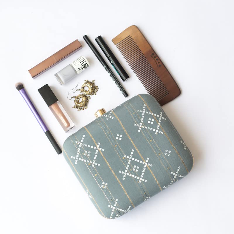 - About: These hand clutches for women features a sleek grey finish with elegant golden strips, offering a modern yet timeless look that complements any ensemble.
