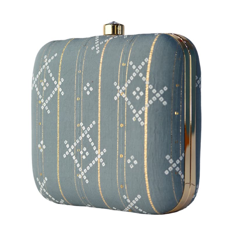 Artklim Grey Box Shaped Clutch With Golden Strips