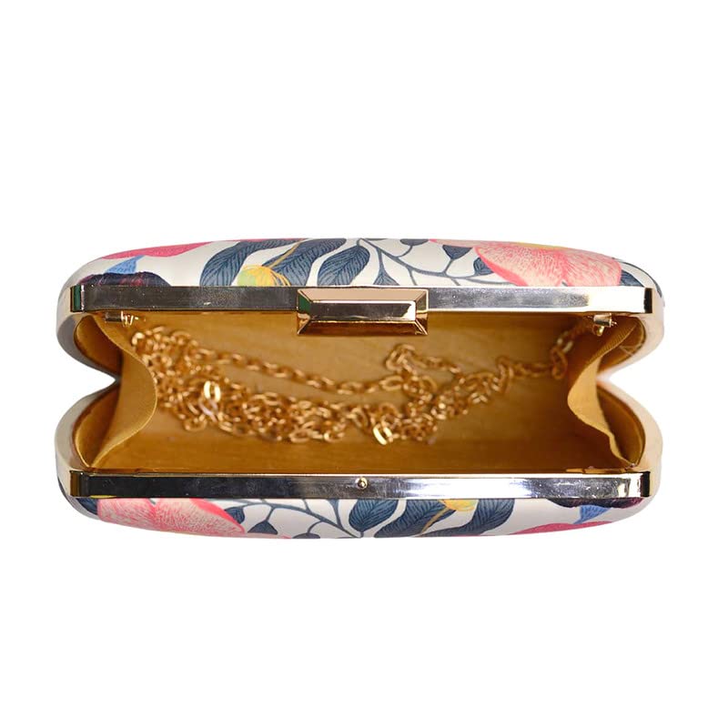 - Care and Maintenance: To maintain the beauty of your clutches for women, avoid exposure to extreme temperatures and sharp objects. Clean gently with a soft, dry cloth and store in a dust bag to protect the delicate print and material.