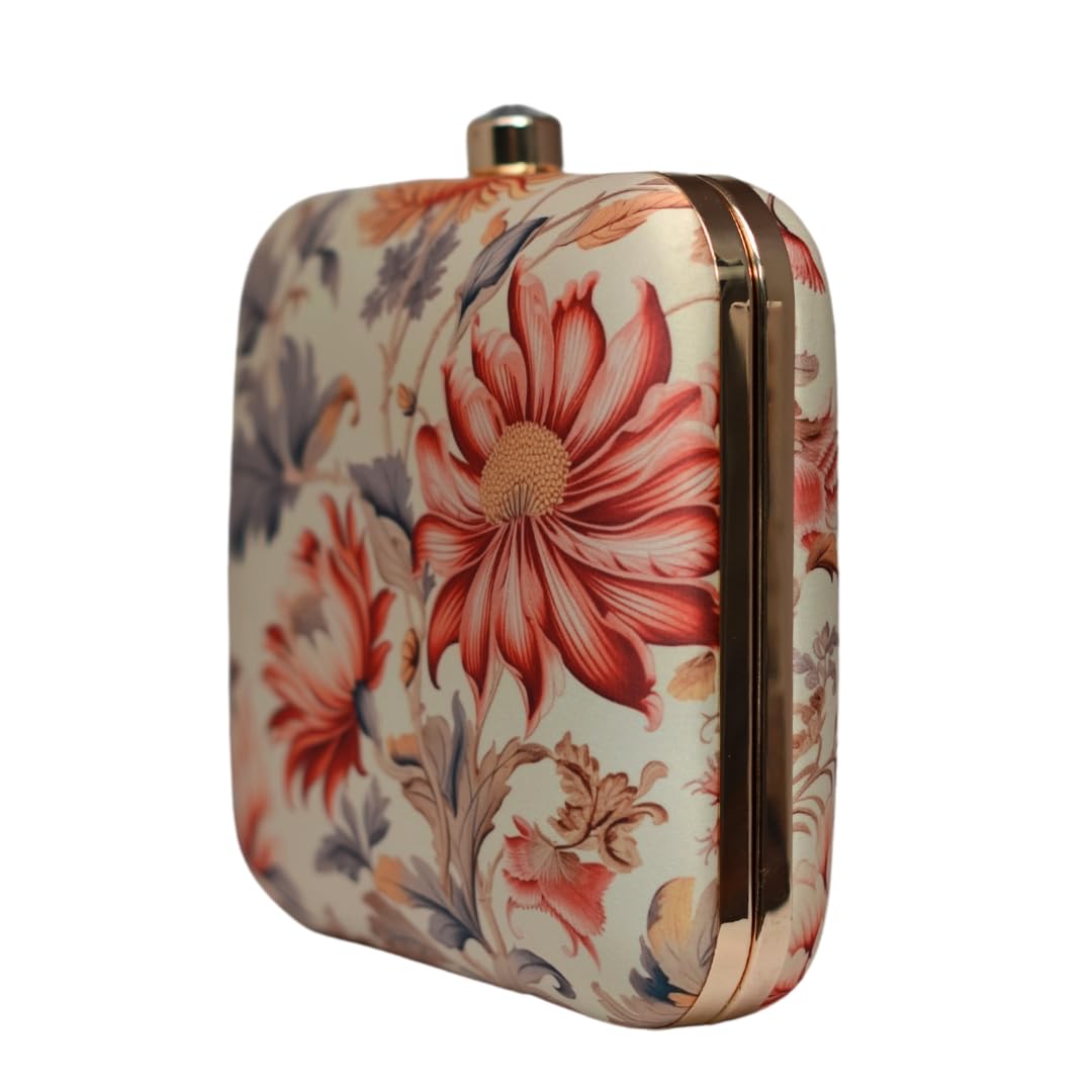 - About: Stylish and elegant clutches for women. This clutch showcases a sophisticated white floral print, offering a classic and graceful accessory that enhances any woman's formal or casual outfit.