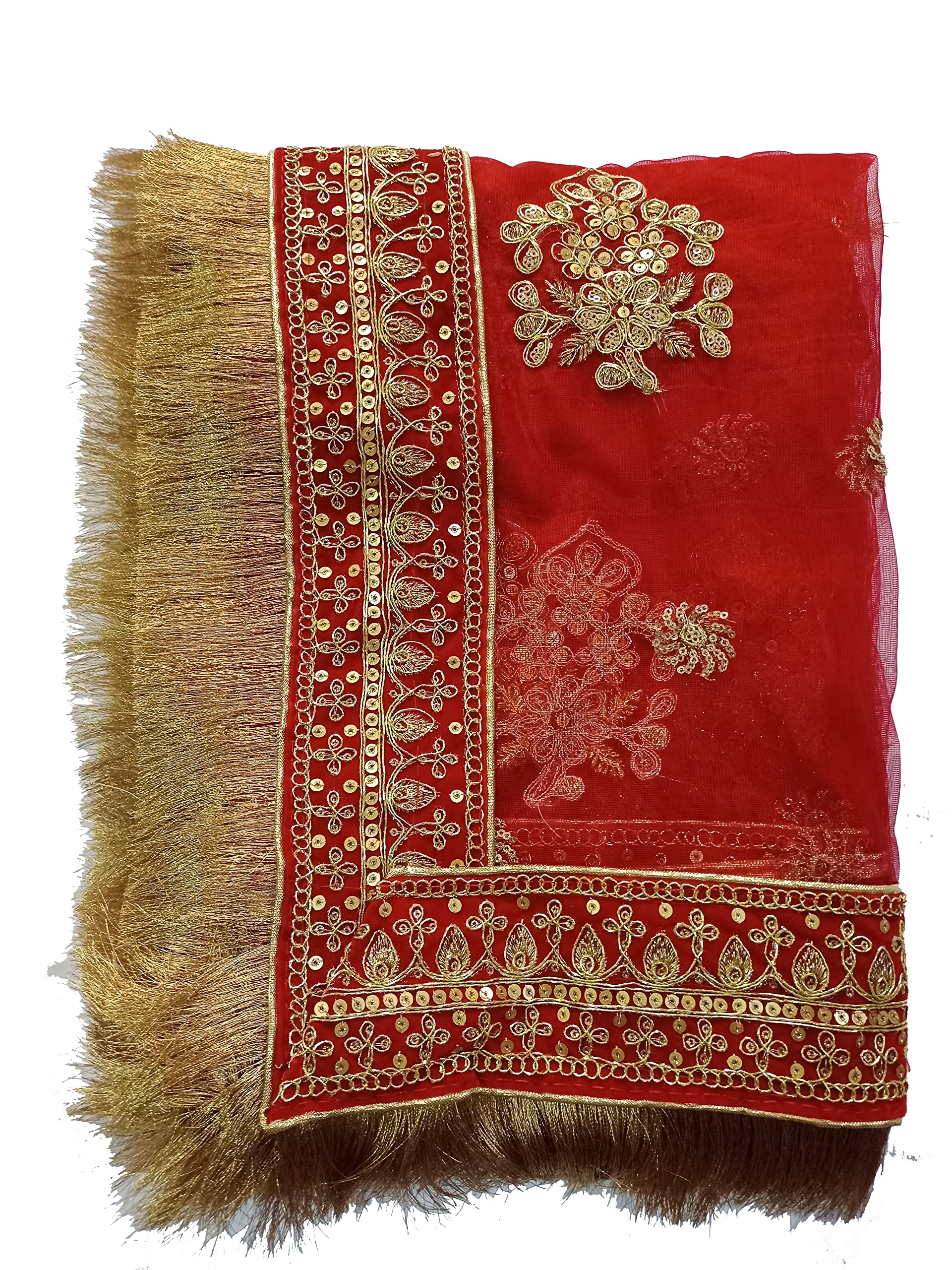asha chunri house Women Net Red Bridal Dupatta With Border 2.05 Mtr