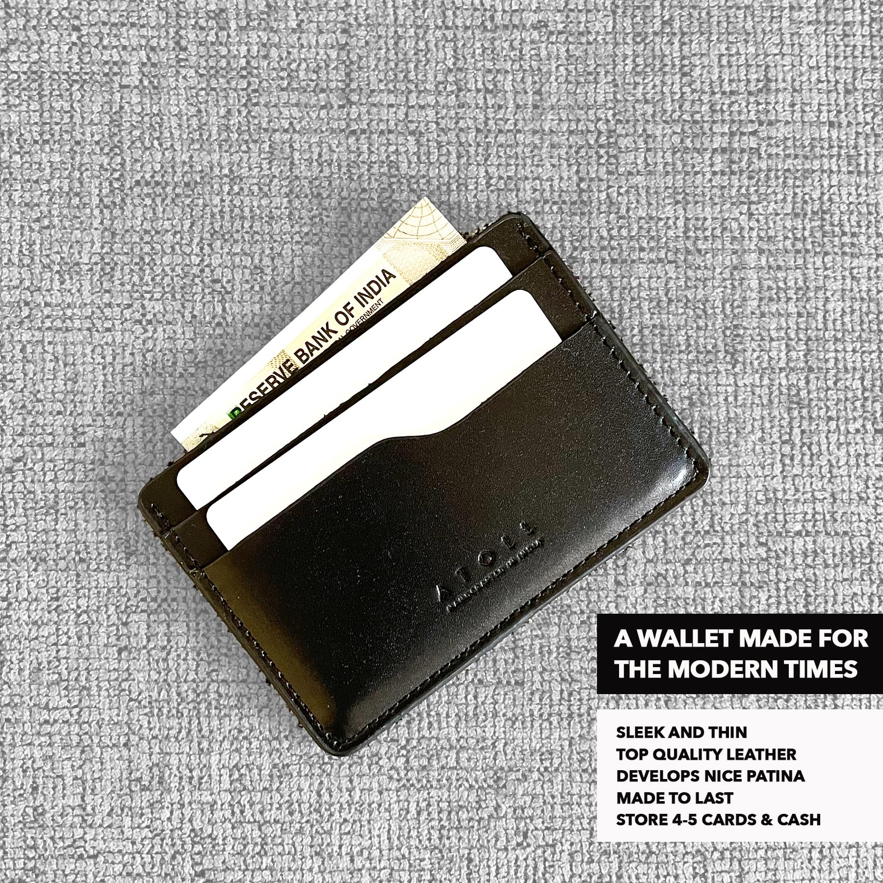 Atoll Leather Slim Card Holder Wallet for Men, Minimalist Credit Card Holder, Genuine Leather Stylish Card Wallet for Men, 3 Card Slot and Large Cash Compartment (Black)