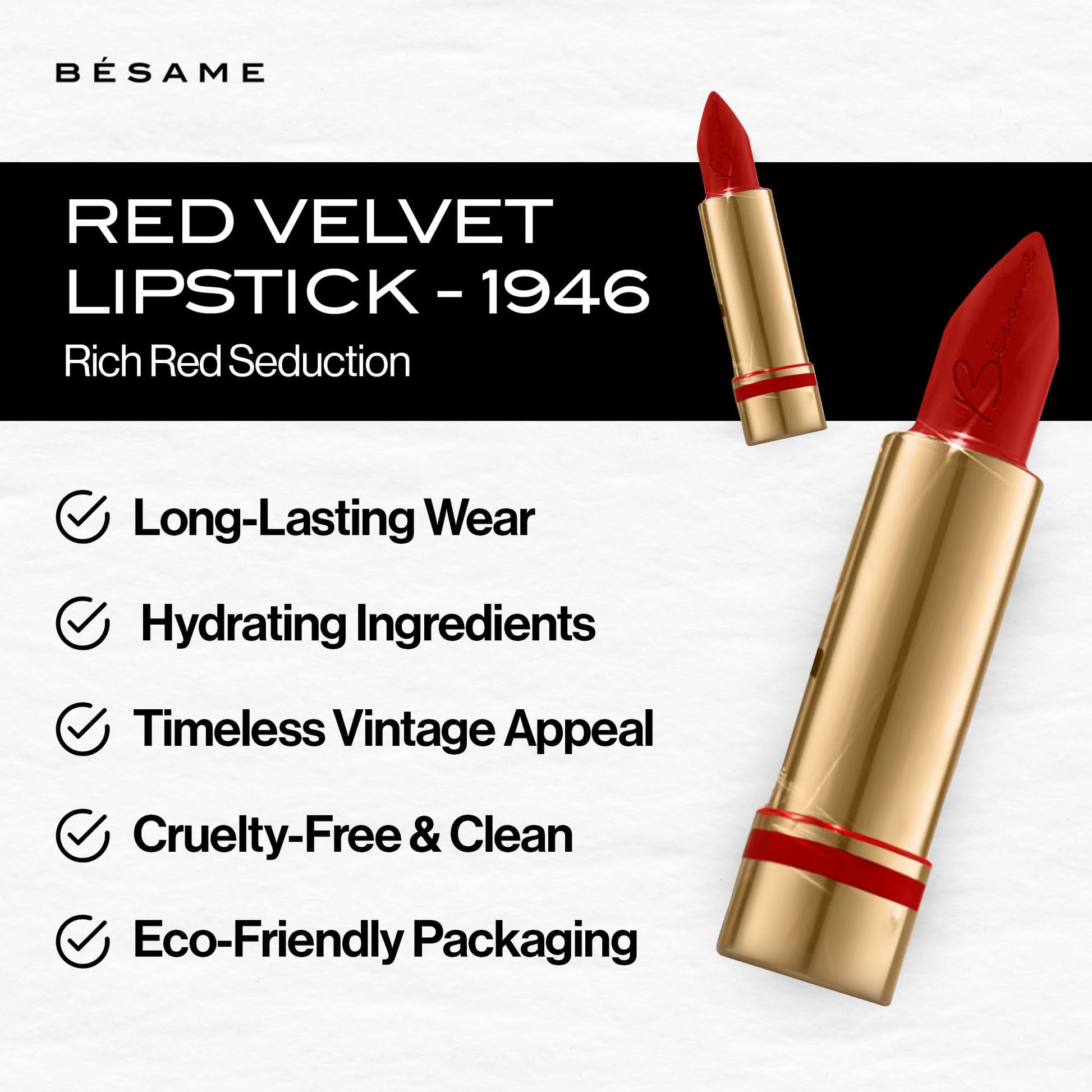 Bésame Cosmetics: Classic Color Lipstick - Vitamin-Enriched, Long-Wearing Satin Finish - Triple Pigmented - Feather Proof - Formulated for Sensitive Skin - Made in the USA