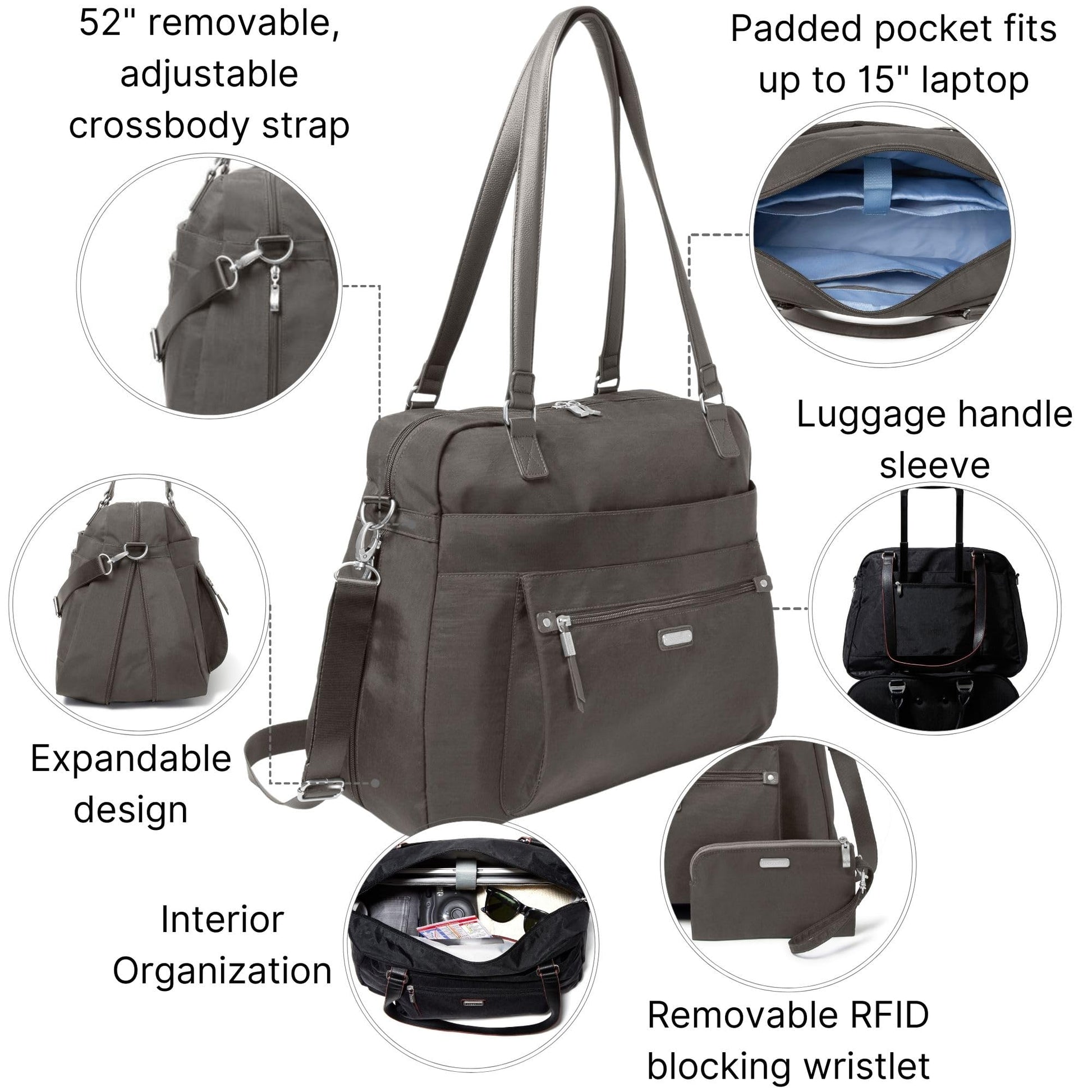 Baggallini Overnight Expandable Laptop Tote with RFID Phone Wristlet (Sterling Shimmer)