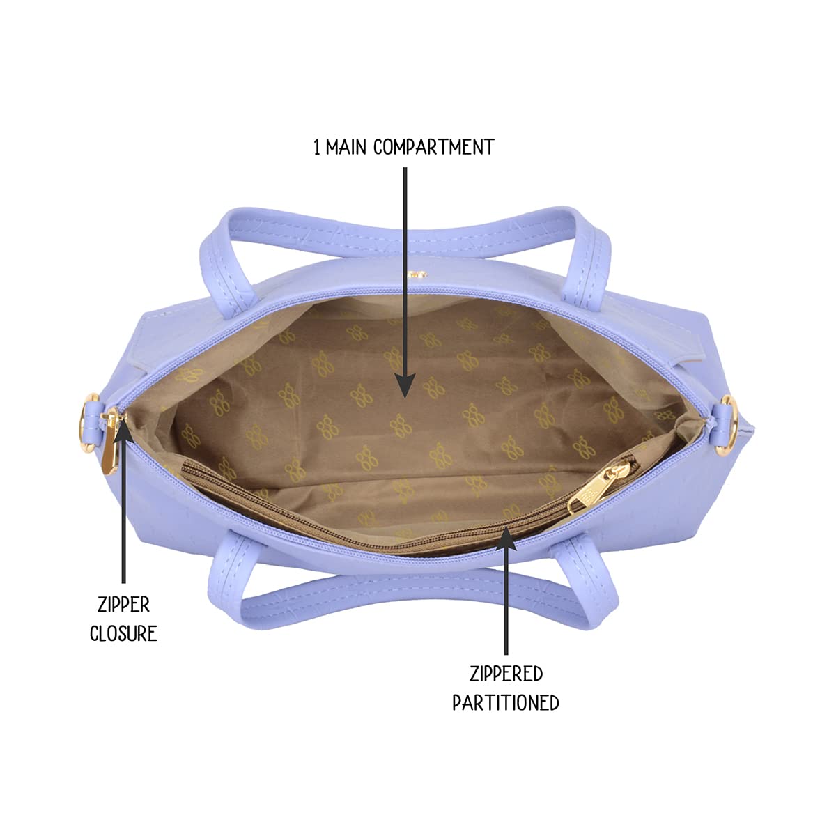 - Digital Lavender exterior with 1 main compartment I 3 total number of pocket I Zipper closure I Cruelty-free premium material.