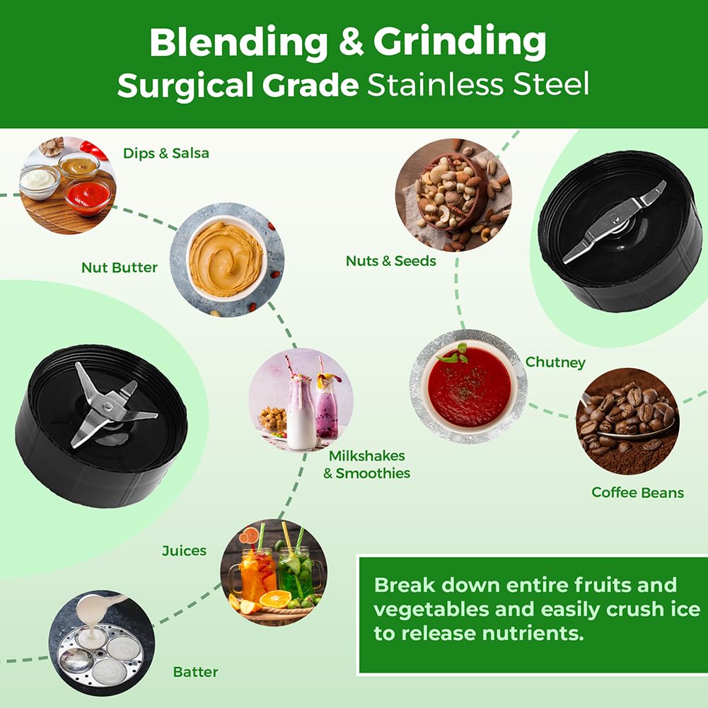 - STAINLESS STEEL BLADES WITH LEAK-PROOF BPA FREE TRITAN JARS : Specially designed blending blade and grinding blade makes it easy to get the finest results is very less time. Will not leak, crack or dent thanks to robust double ball bearing cutter assemblies, premium stainless steel, and shatterproof tritan lids and locking tabs