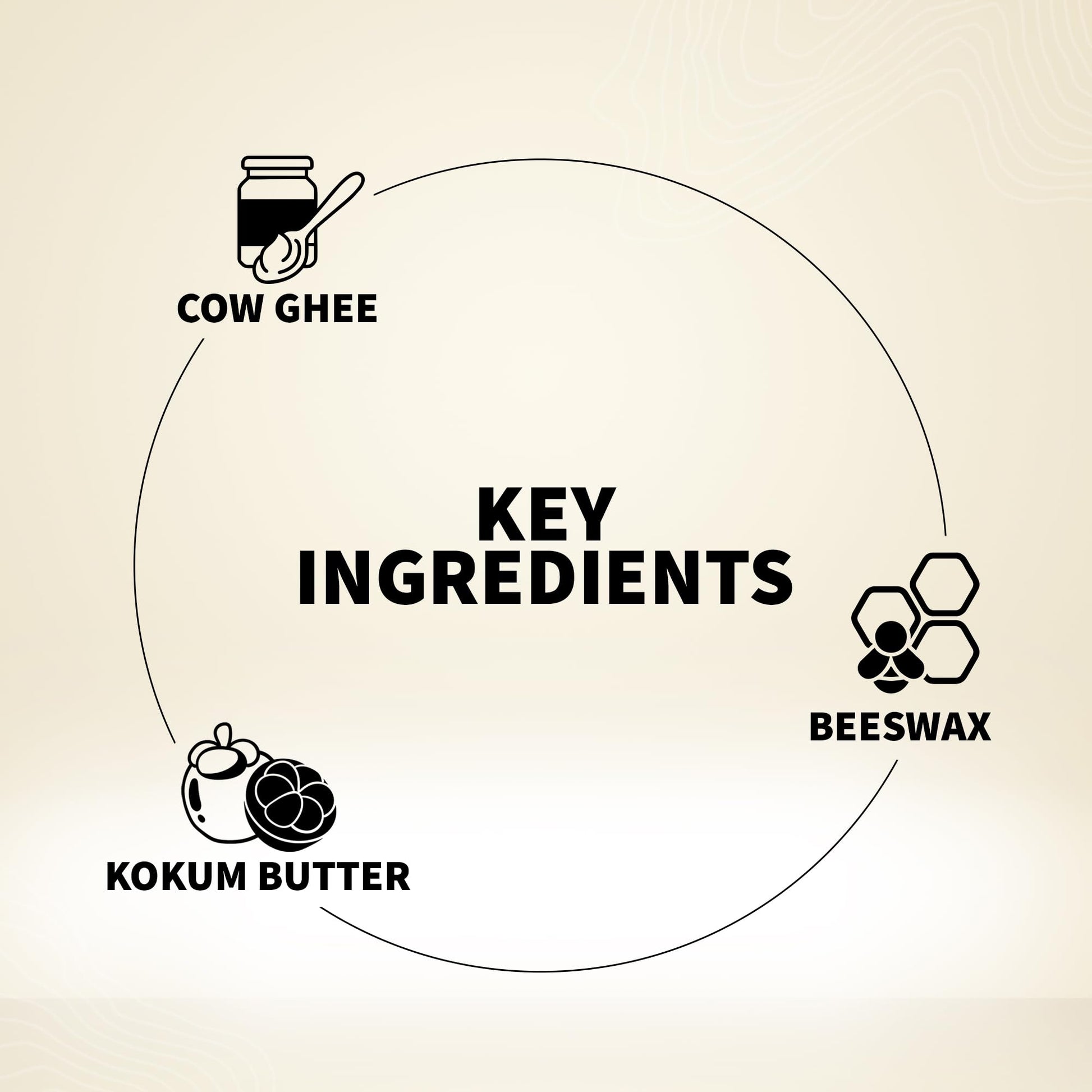 - A lipstick that not only makes your lips look luscious, but also takes care of them thanks to the goodness of Pure Ghee, Kokam butter (garcinia indica), and beeswax.