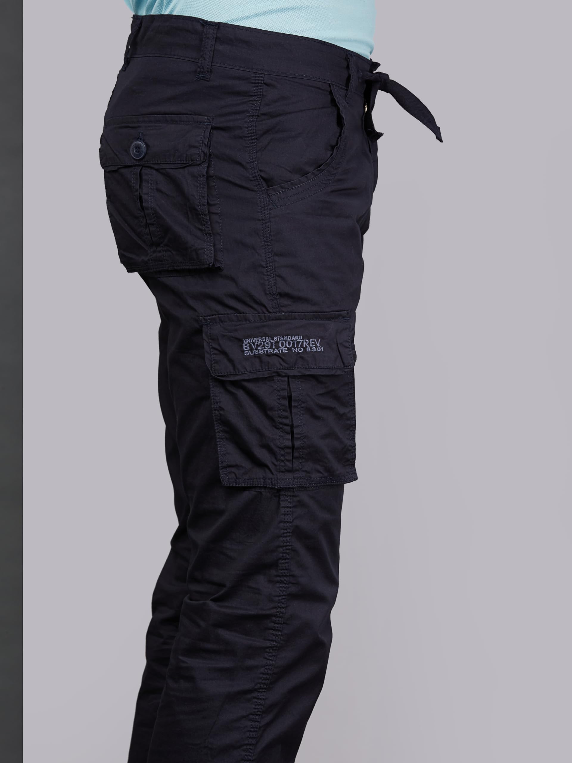 BEEVEE 100% Cotton Solid Navy Fixed Waist Cargo for Mens with Drawstring(FMCR1602NAVY_32)
