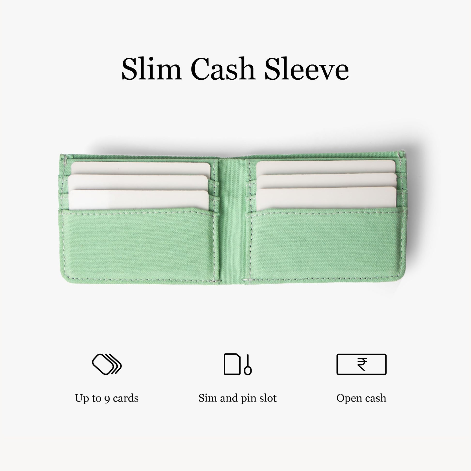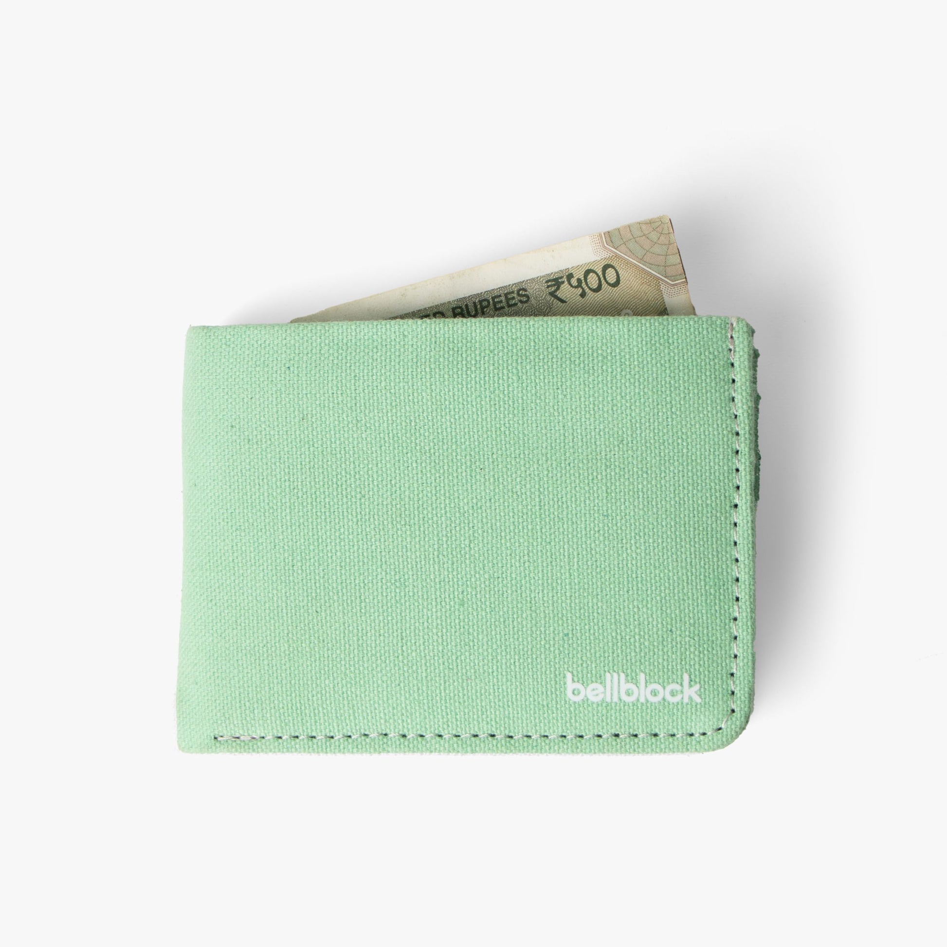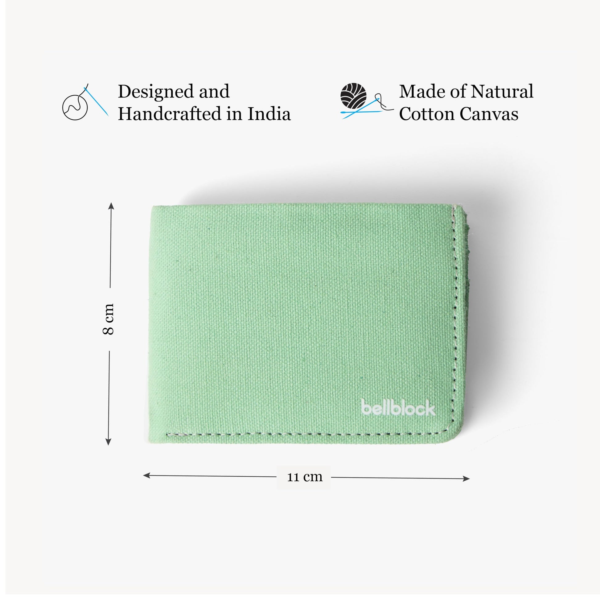 Bellblock Canvas Minimal Wallet for Men | Slim Handcrafted Mens Wallet | with Sim, Mobile Pin & Hidden Extra Card Slots | Cotton Canvas | Tea Green (Pack of 1)