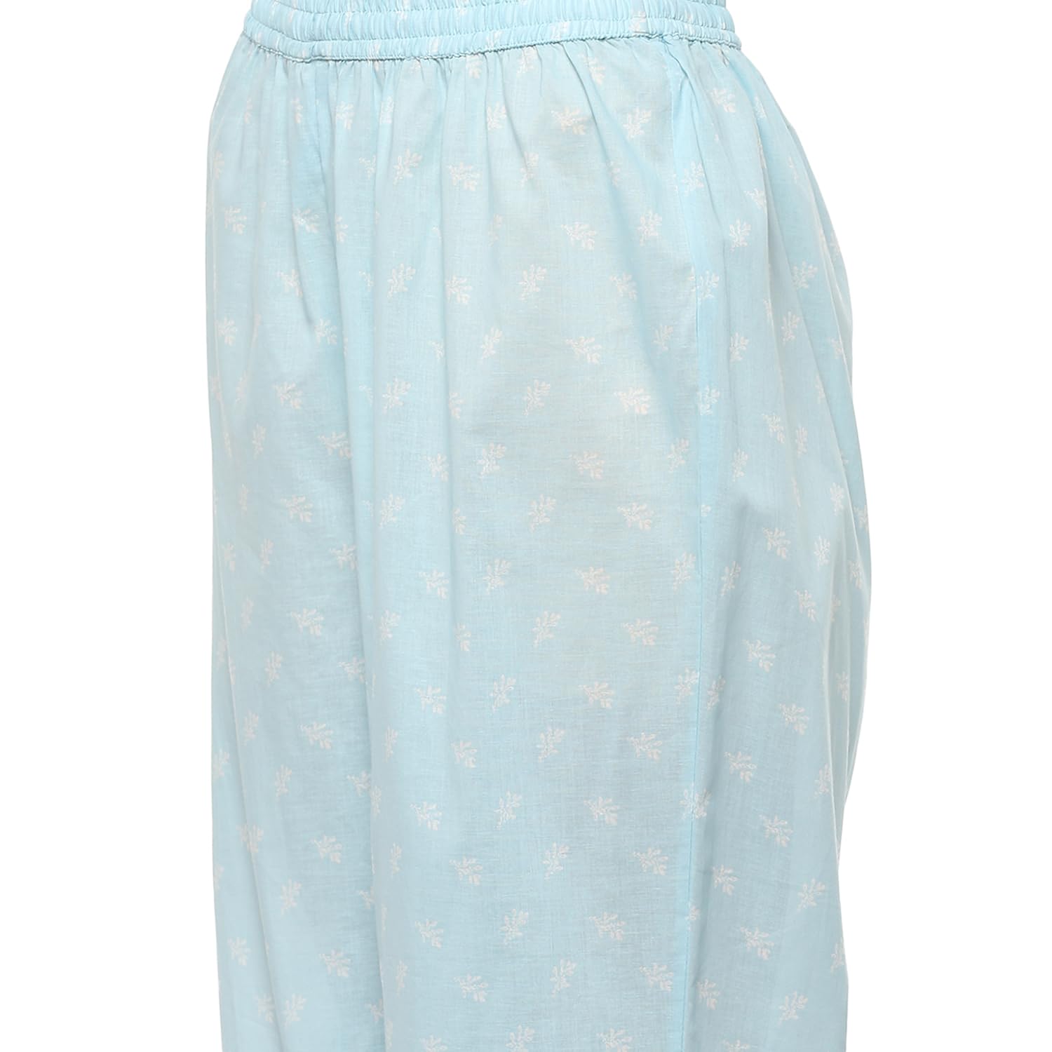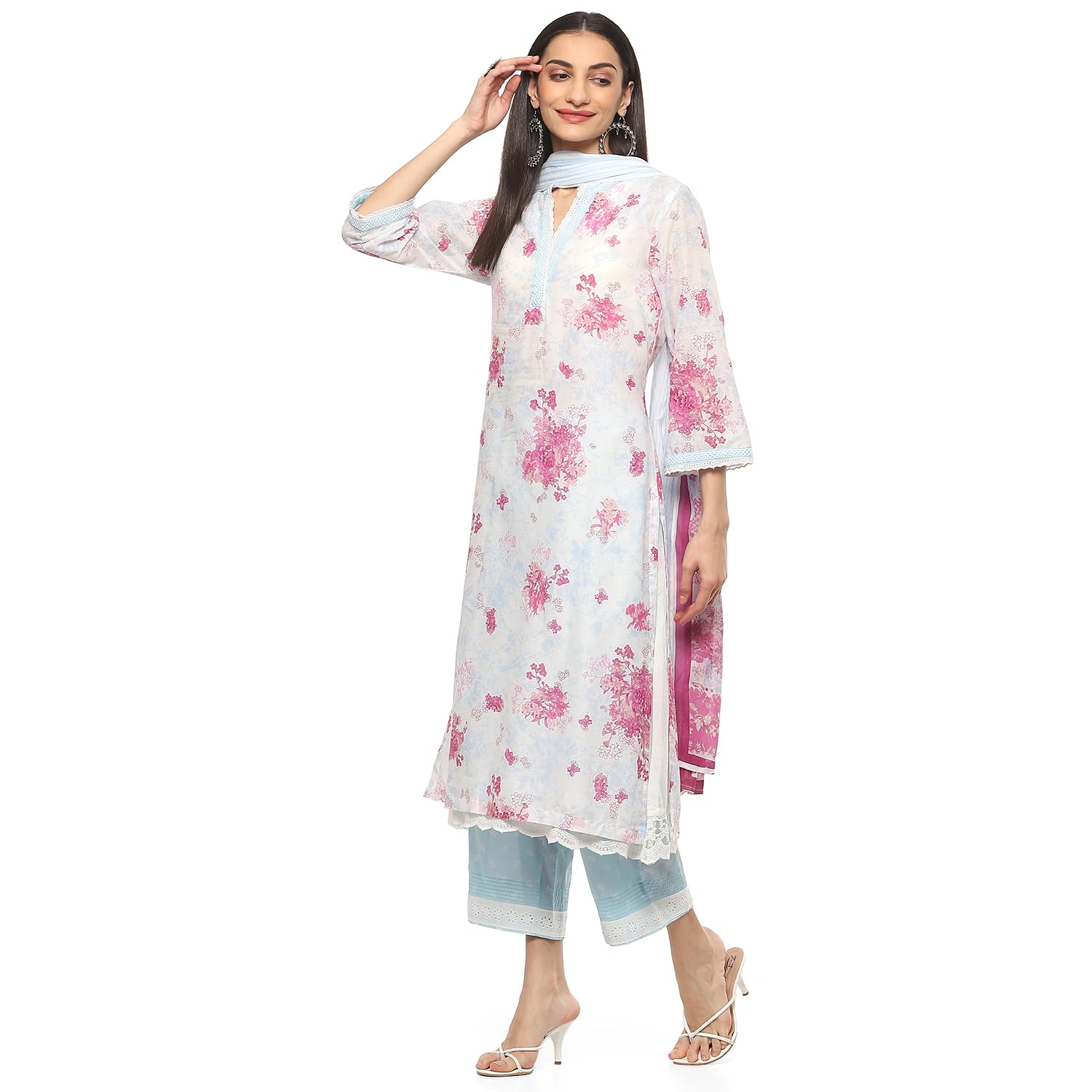 BIBA Cotton Women Printed Layered Salwar Kurta Dupatta(Skd9473_Off White/Blue_42)