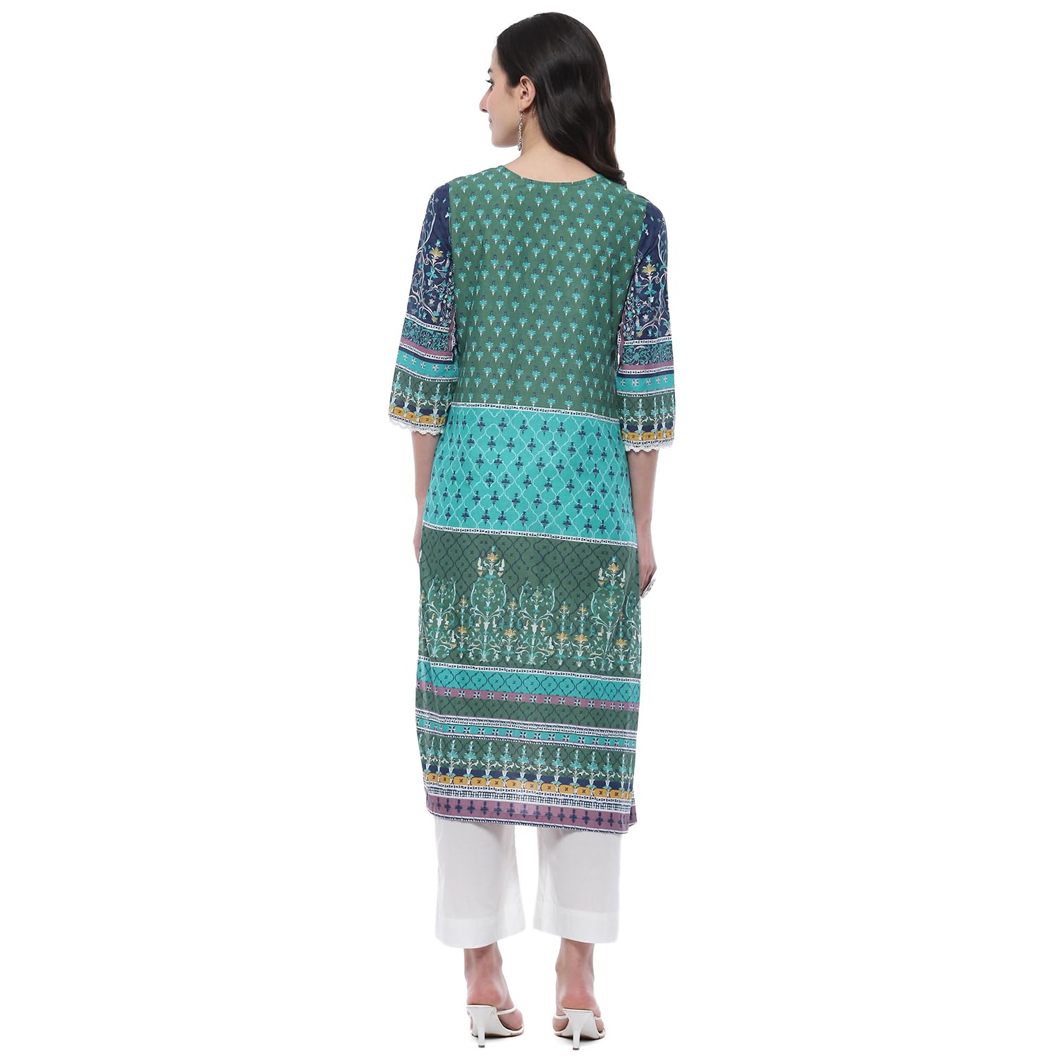 BIBA Cotton Women Printed Straight Fit Kurta Mix and Match(Assorted20018_Teal_34)