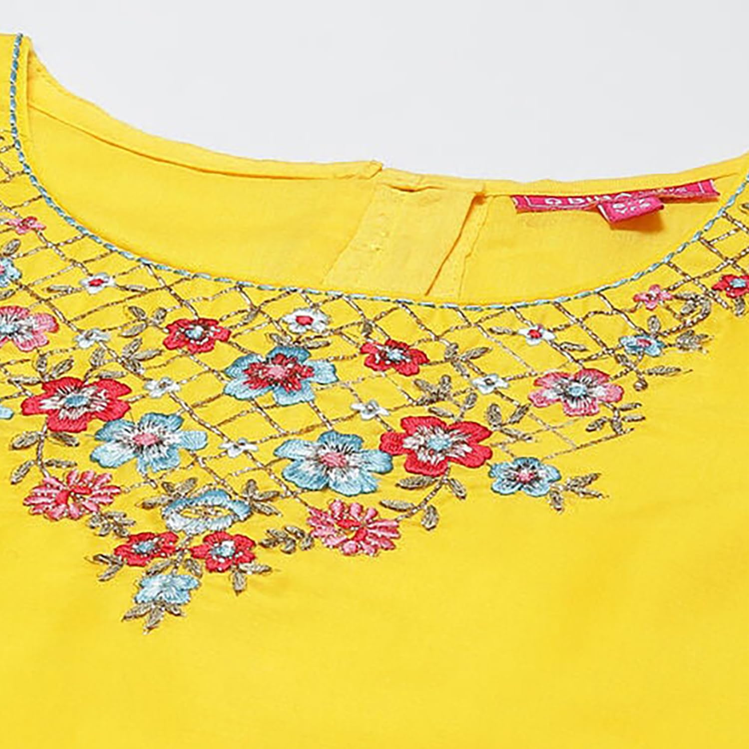 BIBA Girls Polyester Flared Self Design Lehenga Set (KW4960EAW22YEL_Yellow_15)