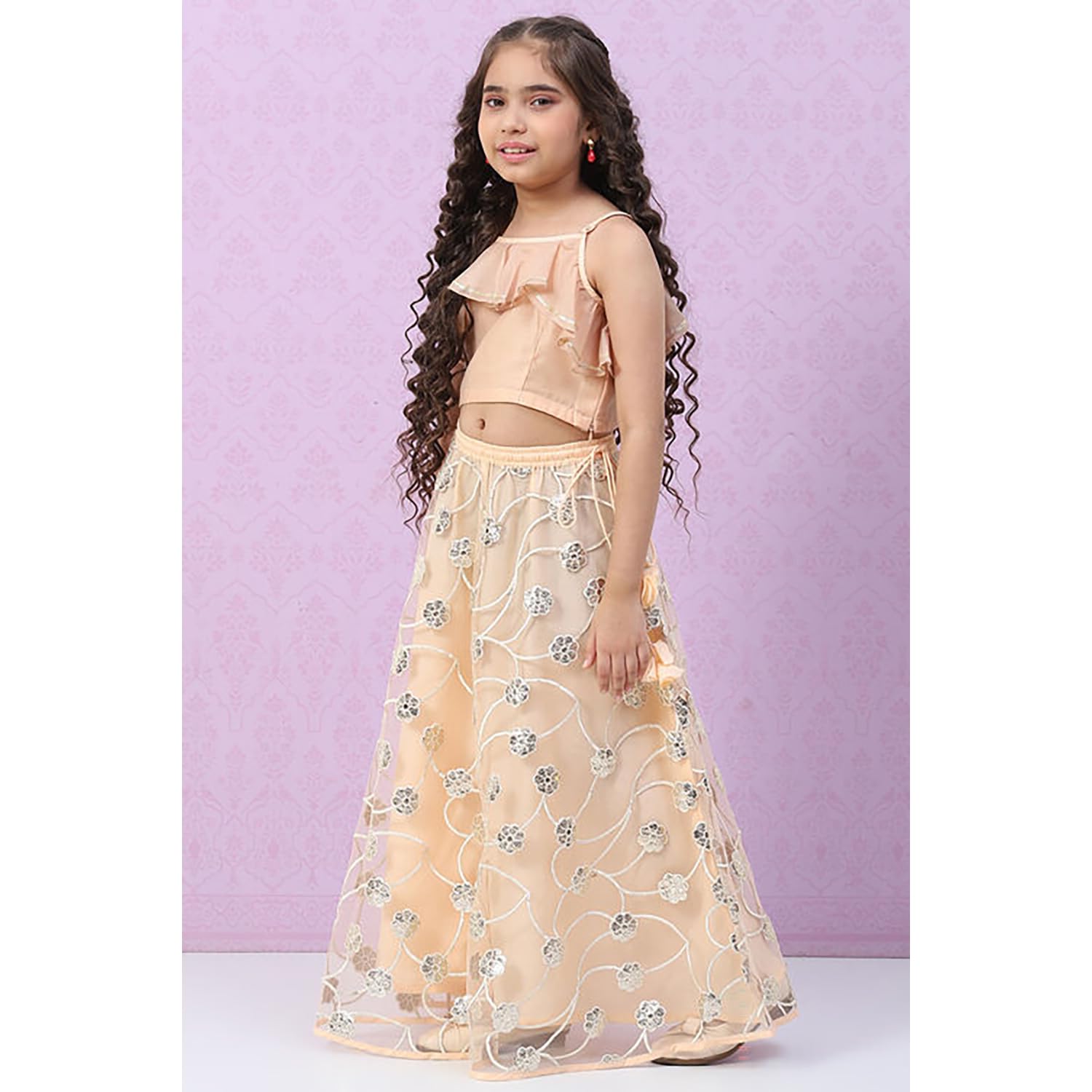 BIBA Girls Polyester Flared Solid Lehenga Set (KW4605EAW22OWHT_Off White_6 7 Years)