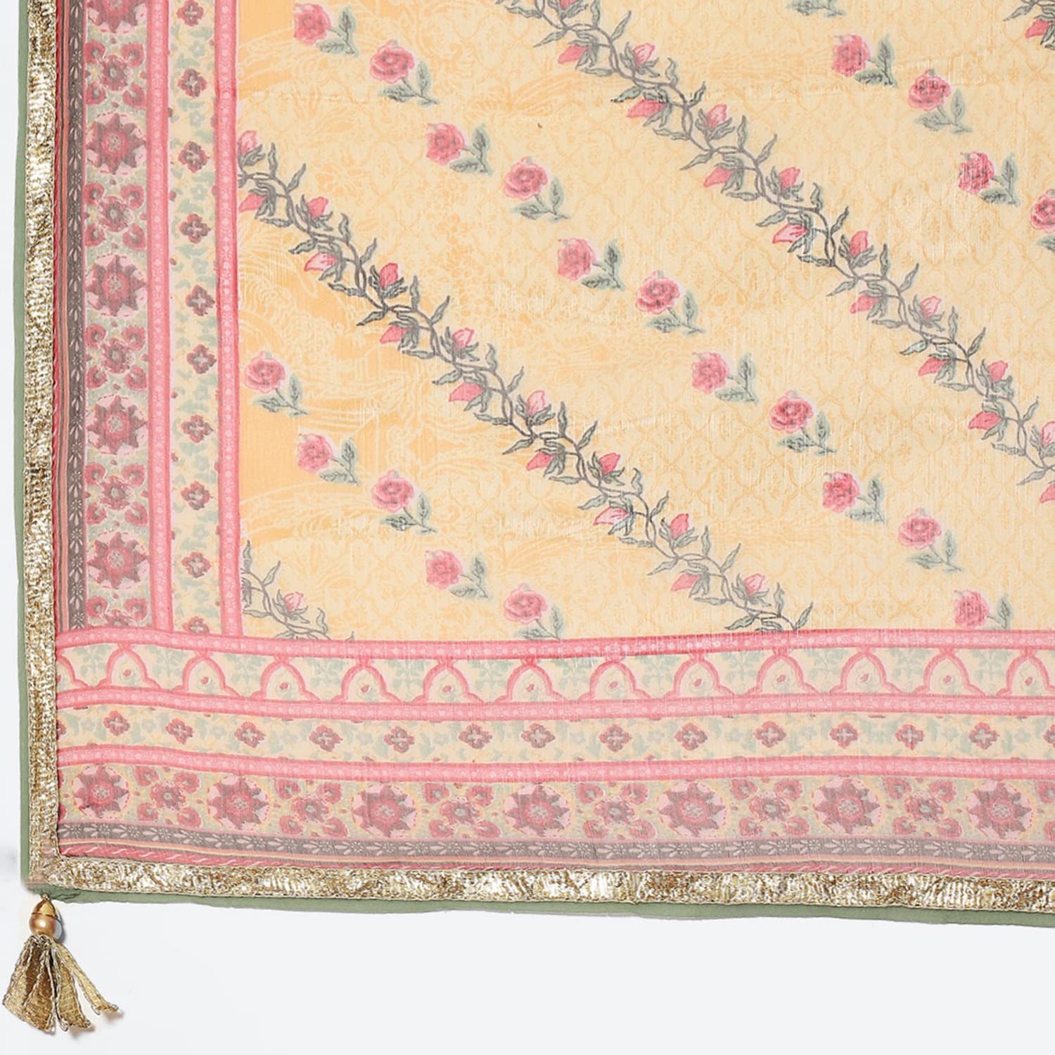 BIBA Polyester Women's Printed Fitted Salwar Kurta Dupatta(Skdshahi Ph7785_Yellow_38)