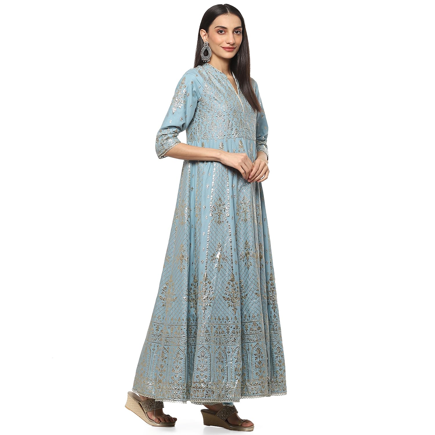 BIBA Viscose Women's Printed Relaxed Salwar Kurta Dupatta(Skdkinari8540_Pastel Blue_32)