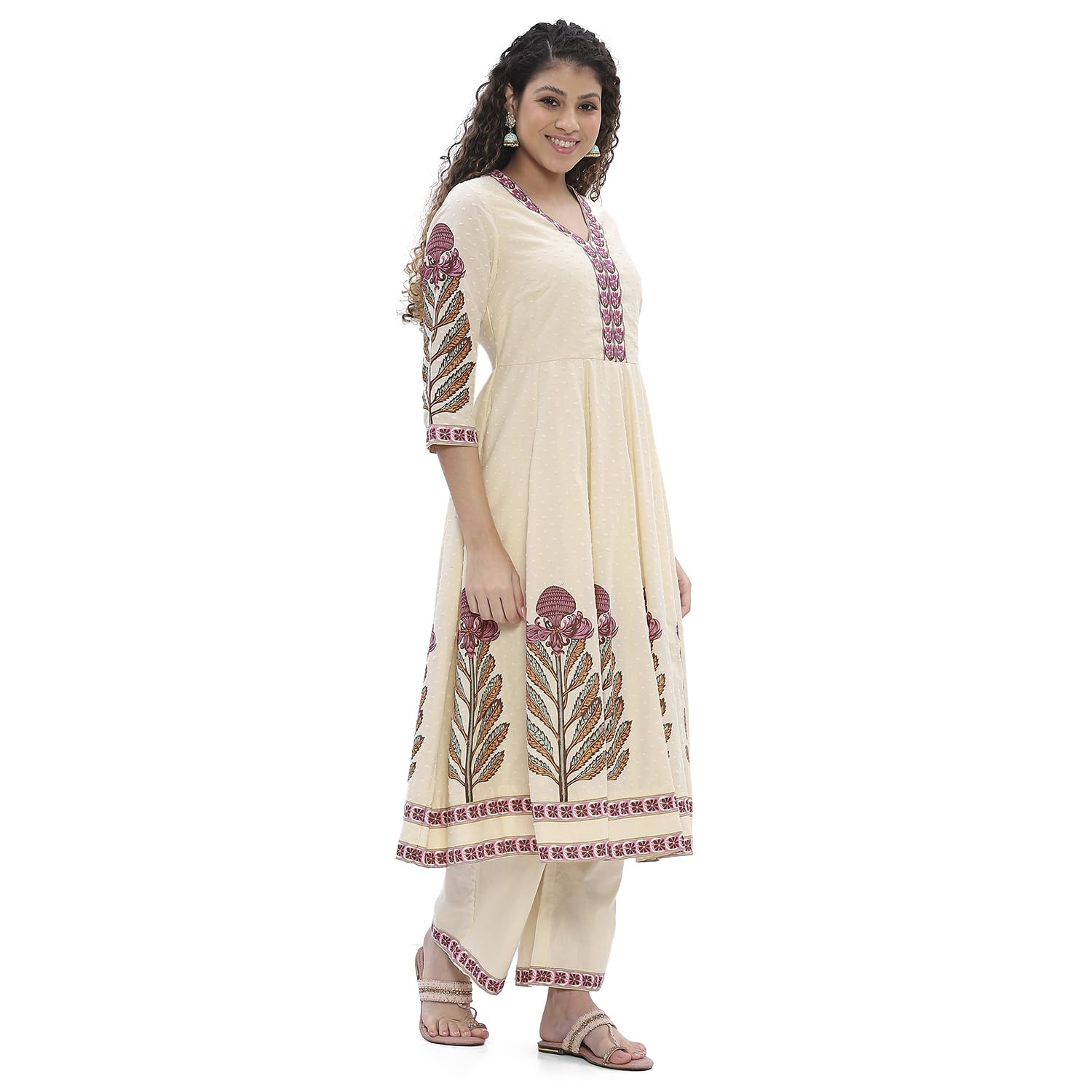 Biba Women Beige Cotton Anarkali Suit Set_38