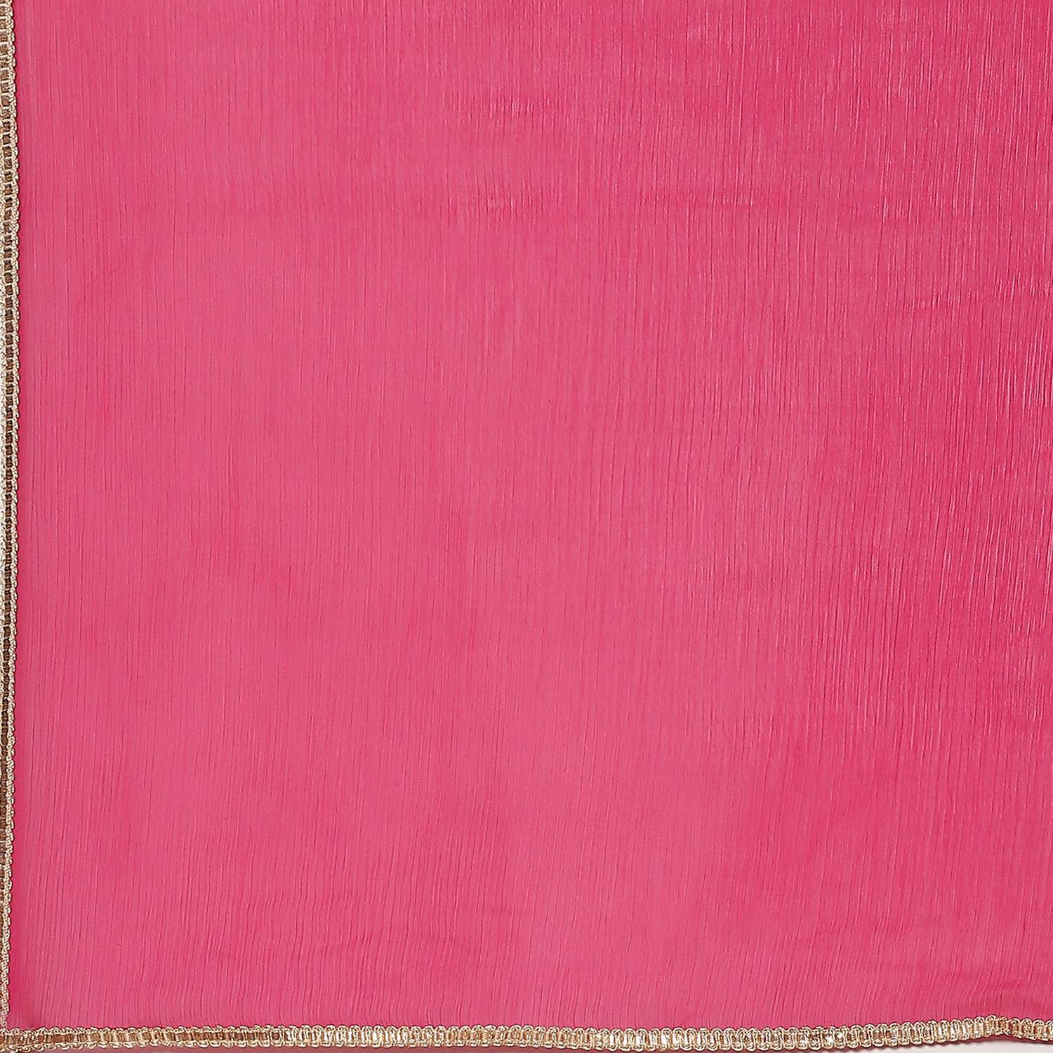 BIBA Women Cotton Blend Printed Anarkali Salwar Kurta Dupatta(Skdgold Mur9143_Fuchsia_42), Pink