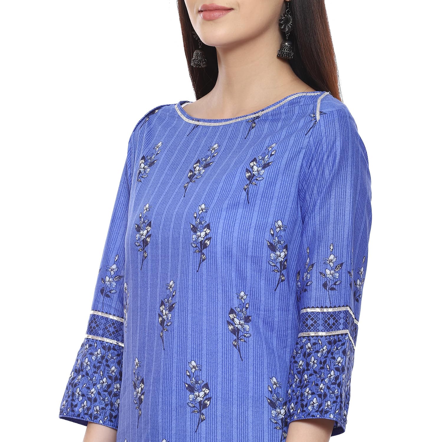 BIBA Women Cotton Printed Straight Mix and Match Regular Fit Tunic Shirt(Mnmassorted16642E_Indigo_38), Purple