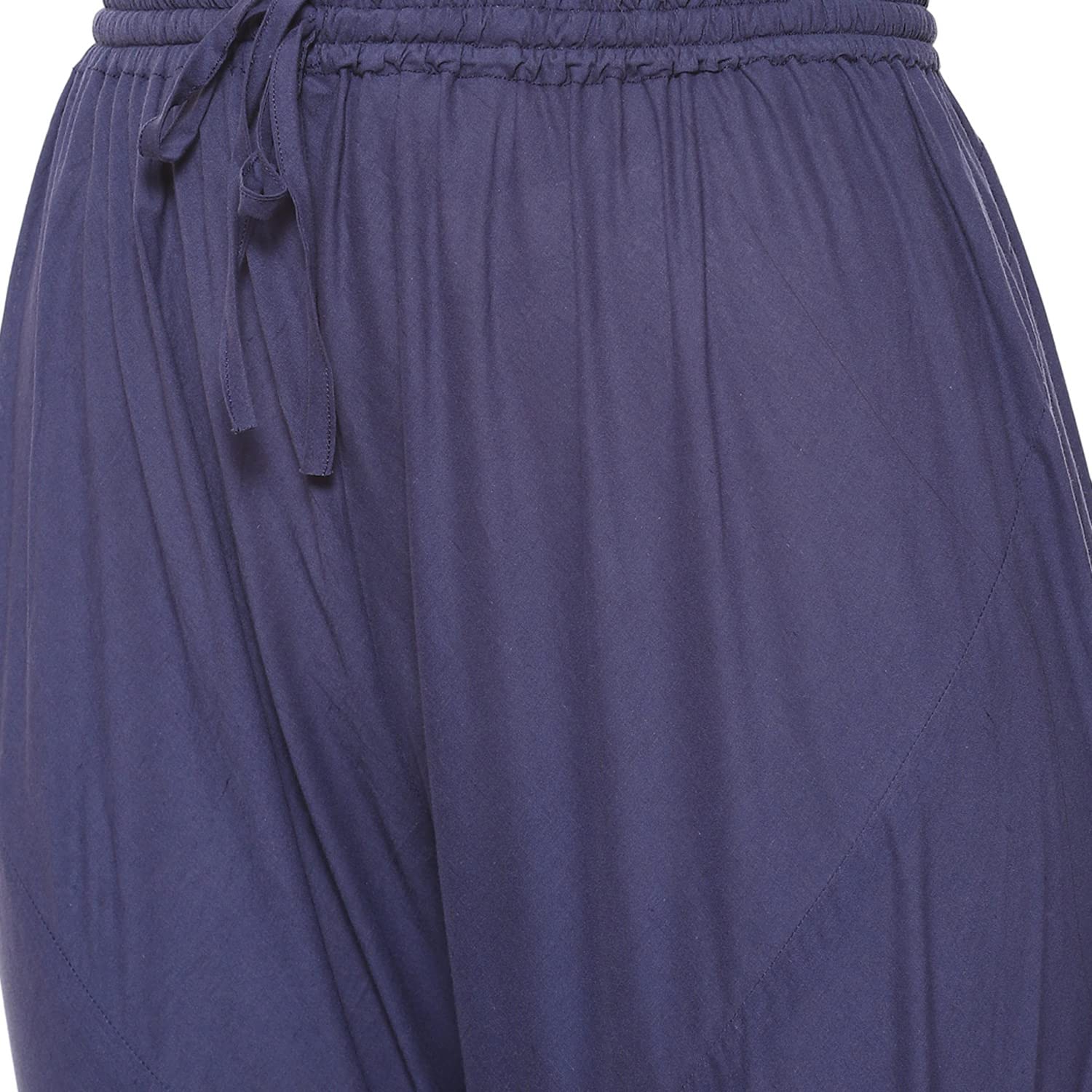 This Navy Blue Cotton Blend Straight Kurta Churidar Suit Set will add a touch of grace and elegance to your wardrobe. The kurta features a straight silhouette with boat neck and 3/4th sleeves, accented with delicate embroidery. The palazzo features a straight silhouette while the dupatta is adorned with a beautiful border. This versatile ensemble will be perfect for special occasions, ethnic celebrations and more, making it a must-have in your wardrobe.